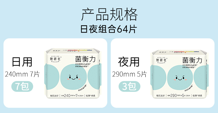 她研社菌衡力囤货组合10包64片 弱酸抑菌 干爽透气 敏肌适用