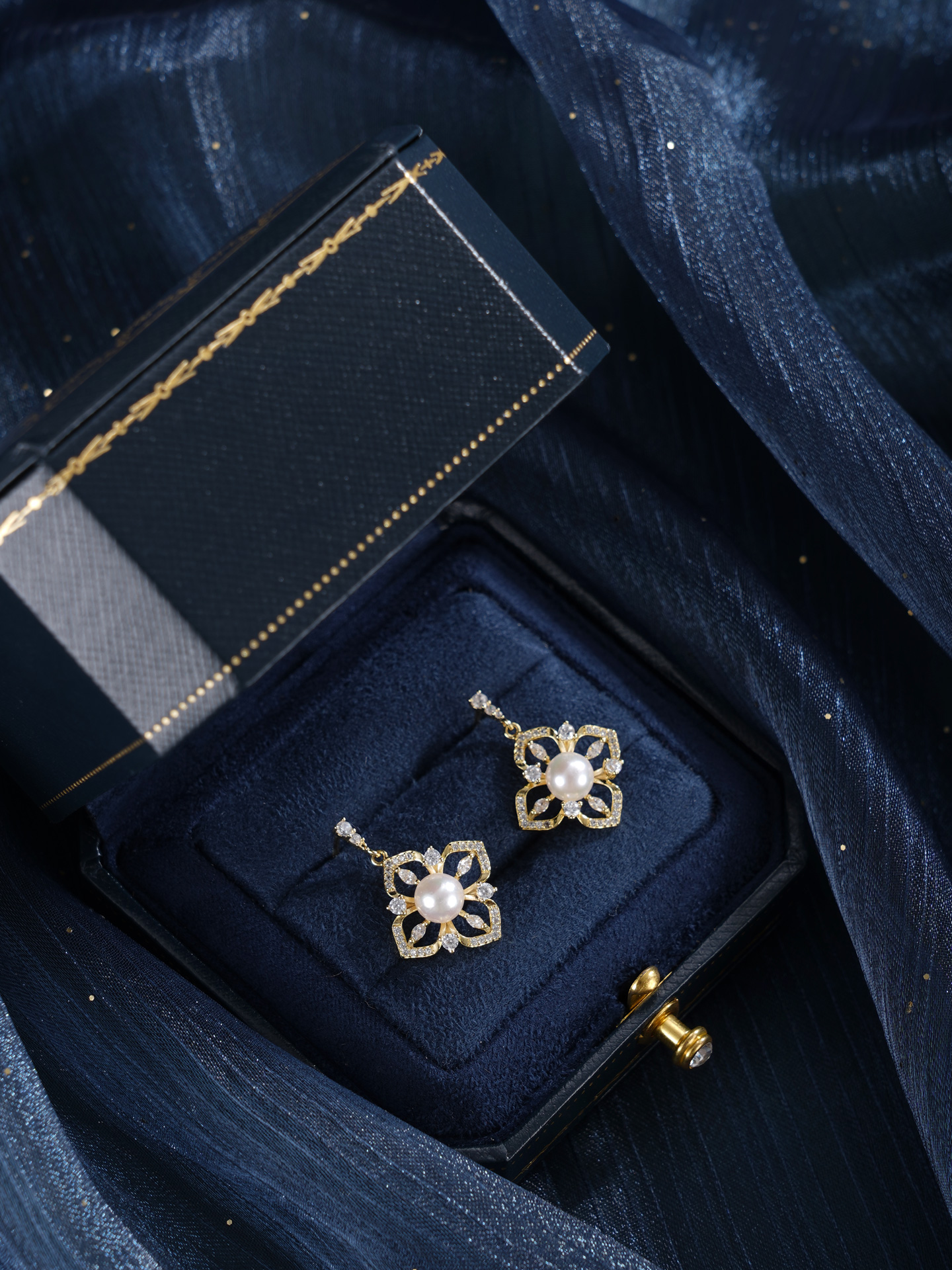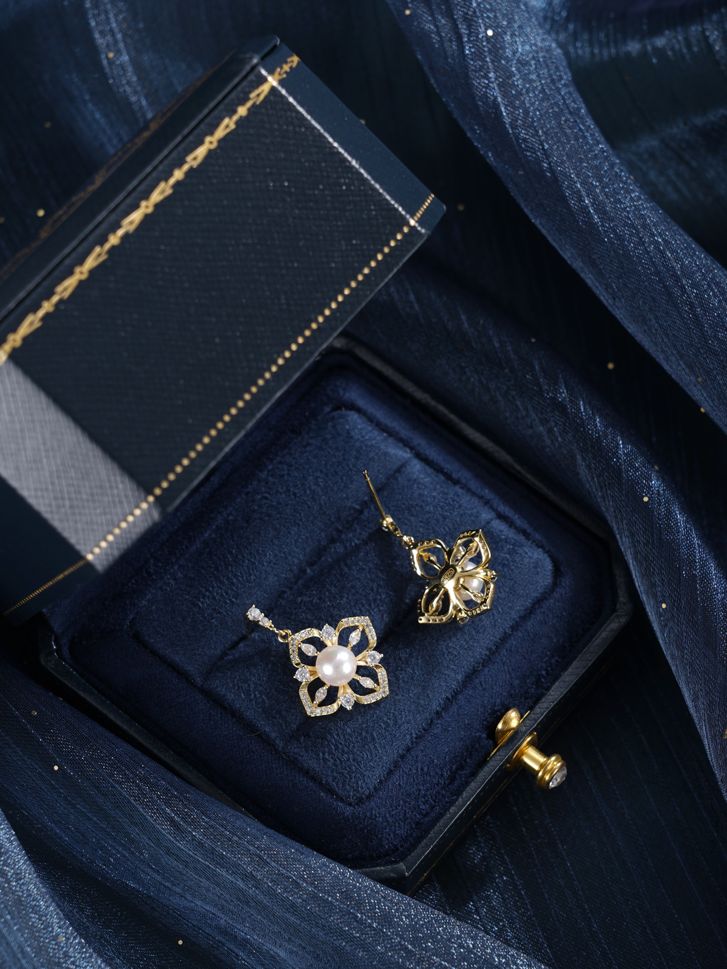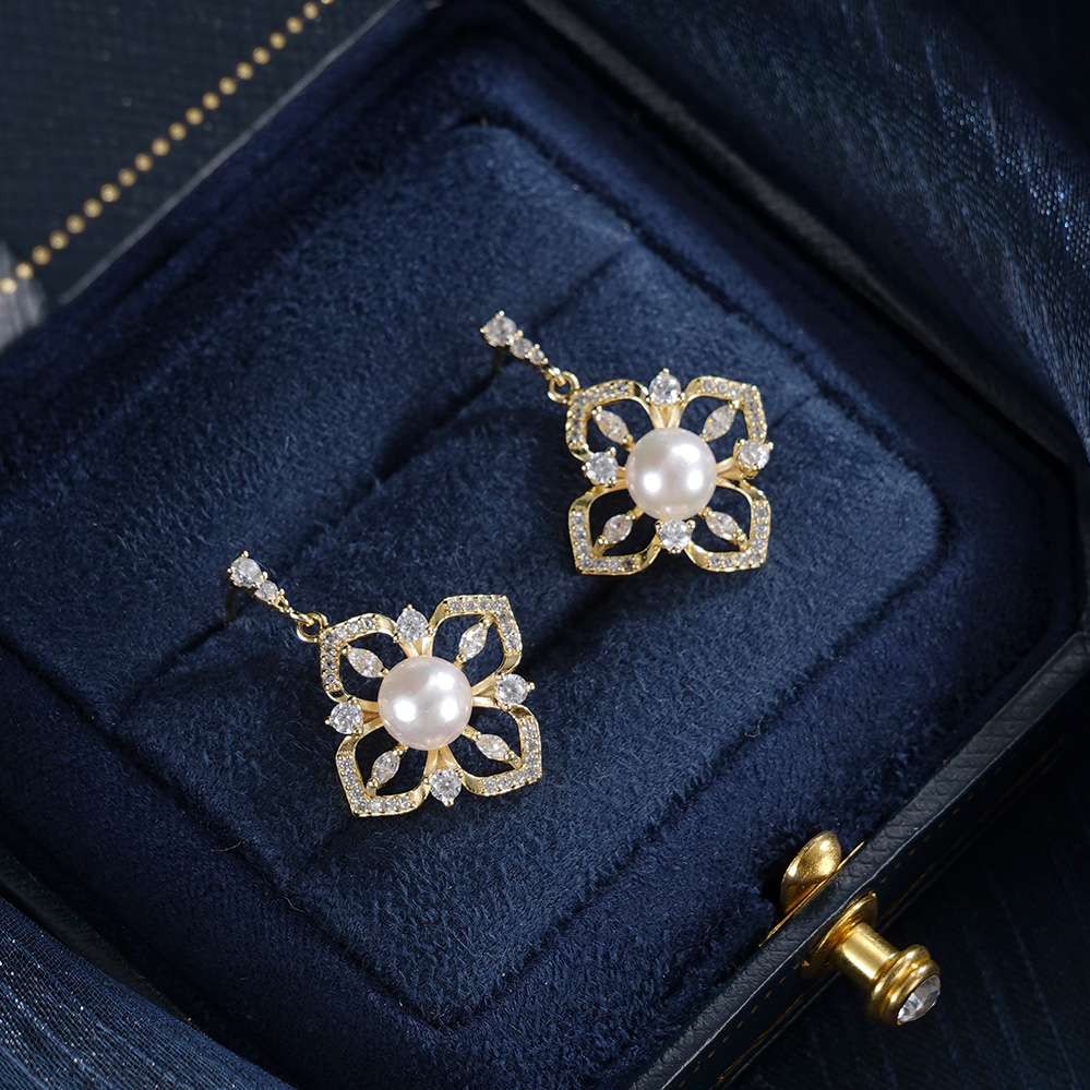 子佩集【四叶芳菲】银S925珍珠惜王妃耳钉【XXED009】6mm珠镀金四叶草2601