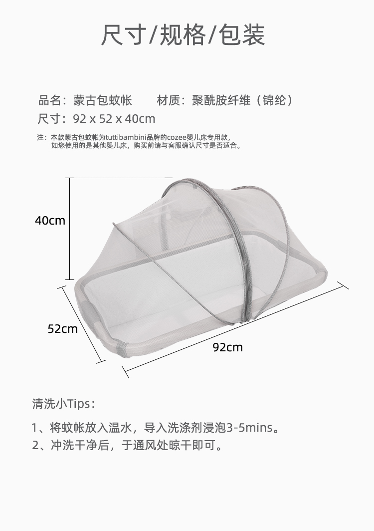 Tutti Bambini 圆顶蚊帐(适配CoZee婴儿床) |婴儿床蚊帐蒙古包全罩式 新生儿欧式蚊帐防蚊罩可折叠免安装蚊帐