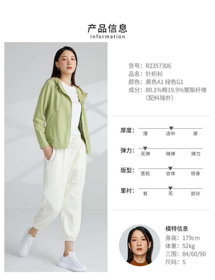 VIVIAN LIU薇薇安刘 R2357306秋女装新款针织毛圈连帽针织外套
