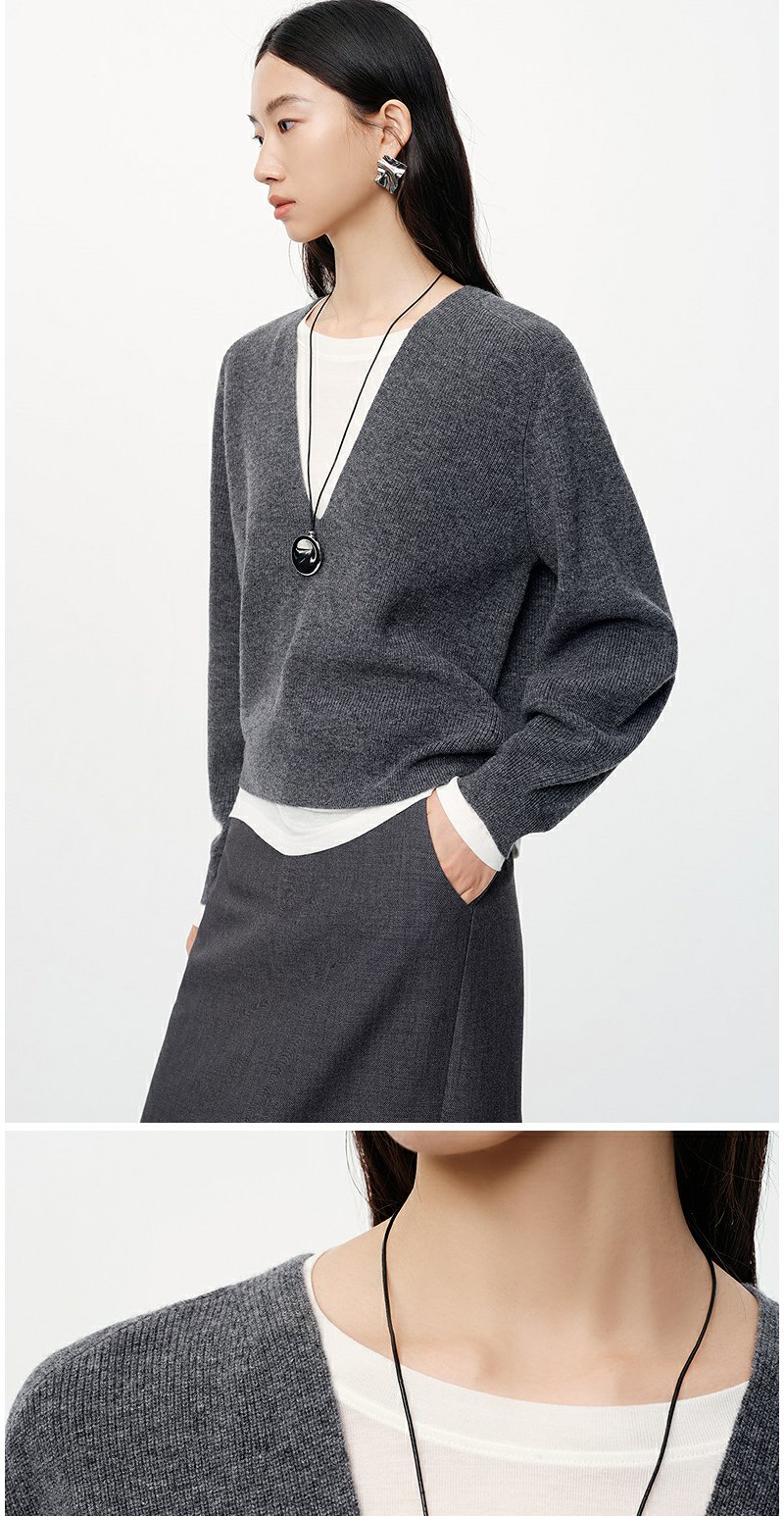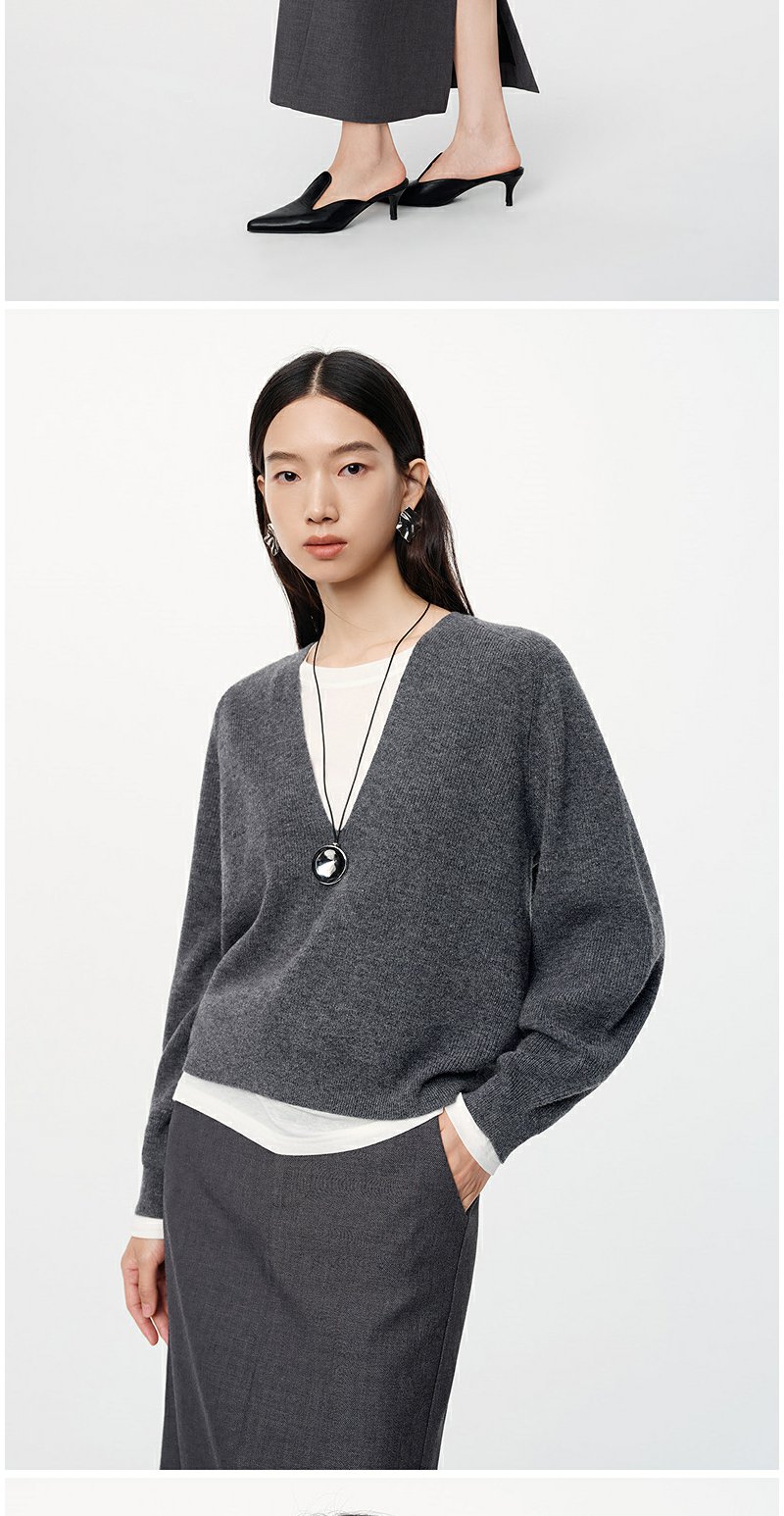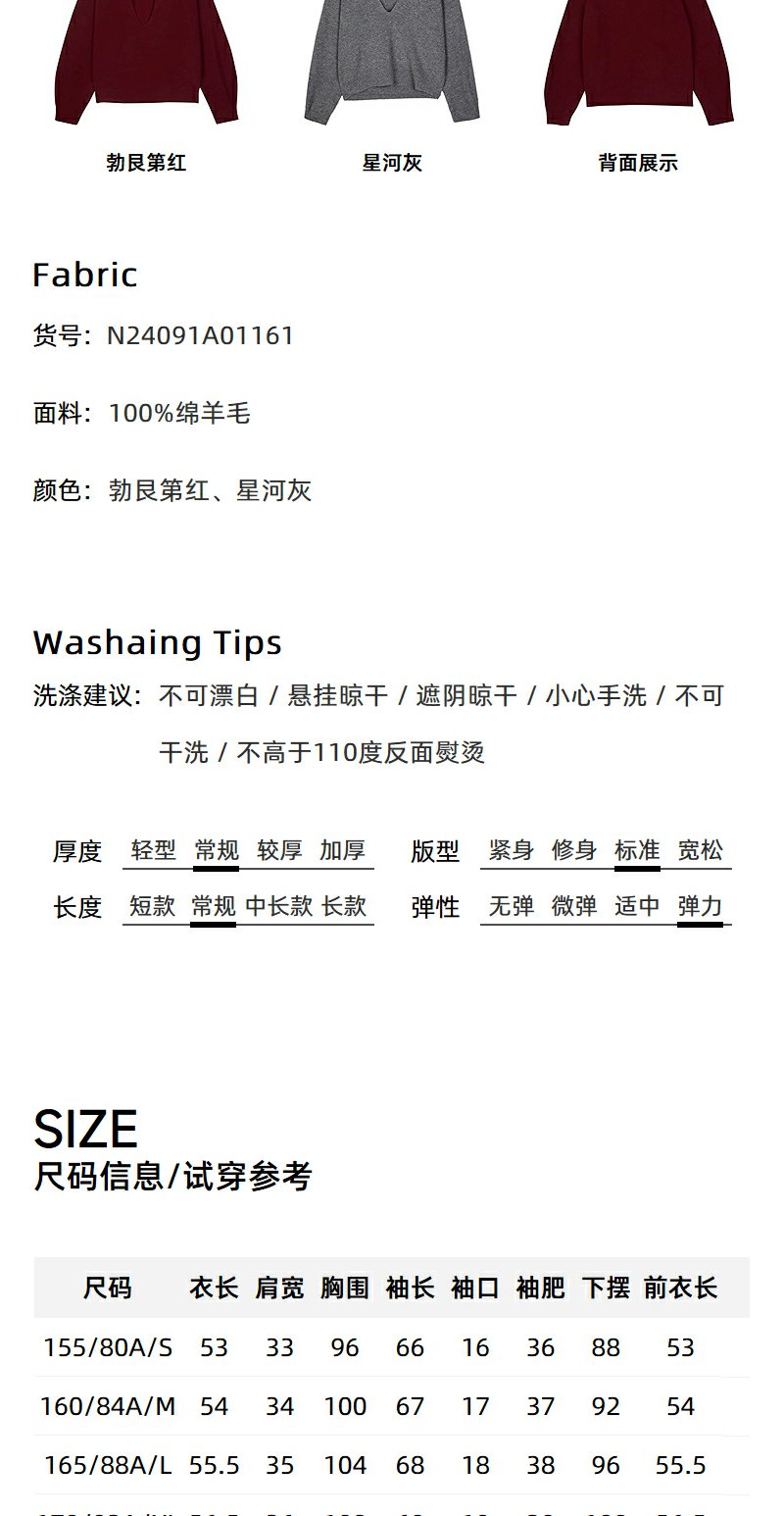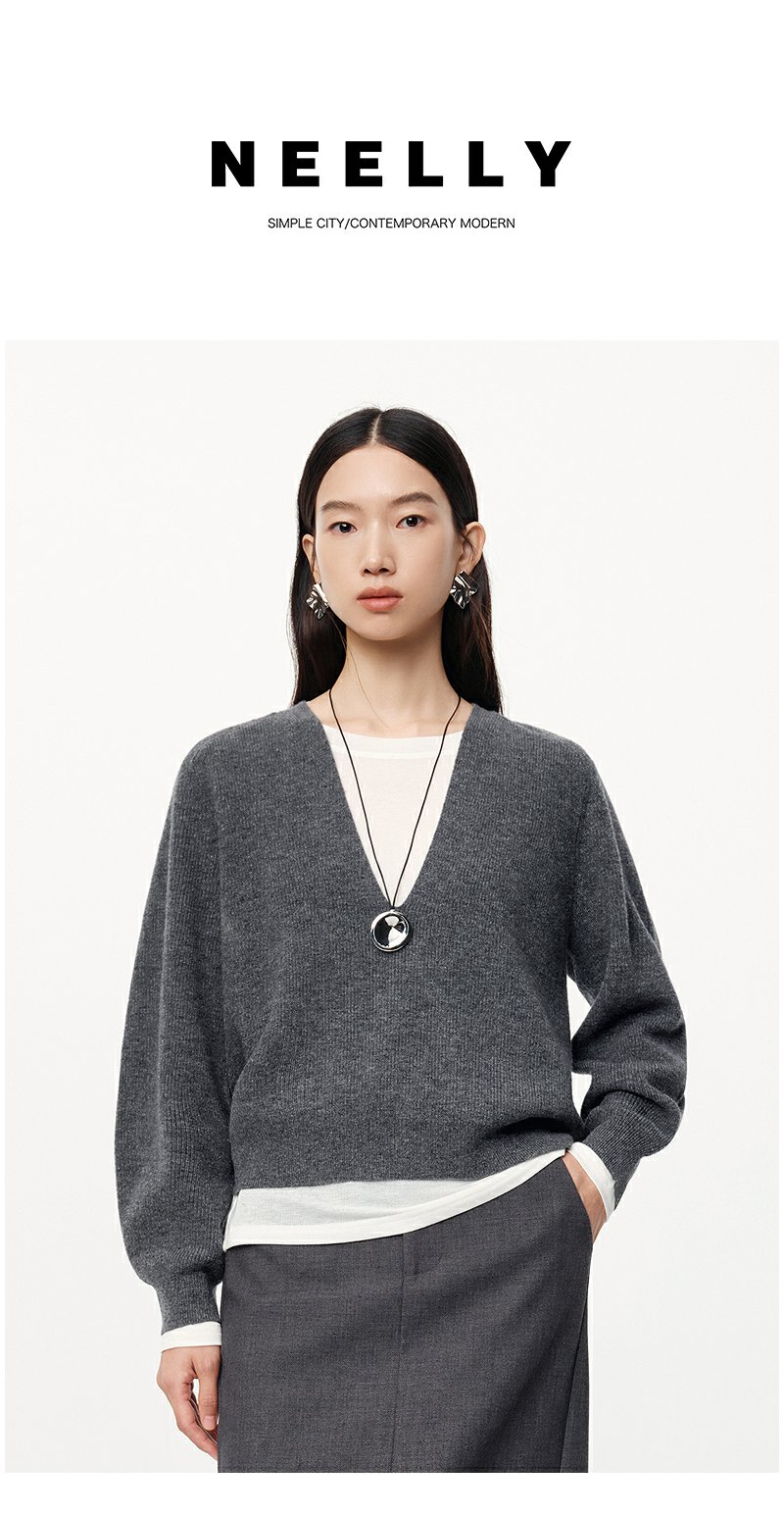 NEELLY纳俪秋季新款商场同款绵羊毛纯色通勤针织衫女软糯内搭毛衣N25094A04619