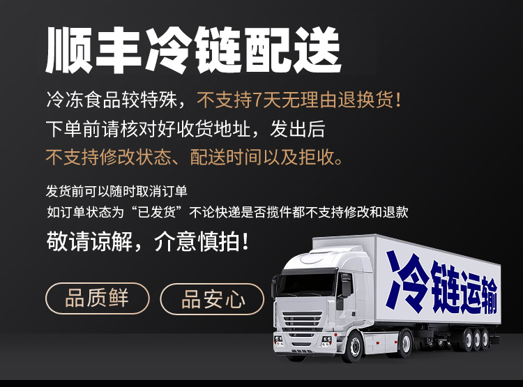 4、签收48小时内,如发现商品有腐烂变质、缺斤少两、货不对板(大小/重量 /数量不符)等问题并提供有效凭证,商家承诺在24小时内处理,最高支持全额退款。