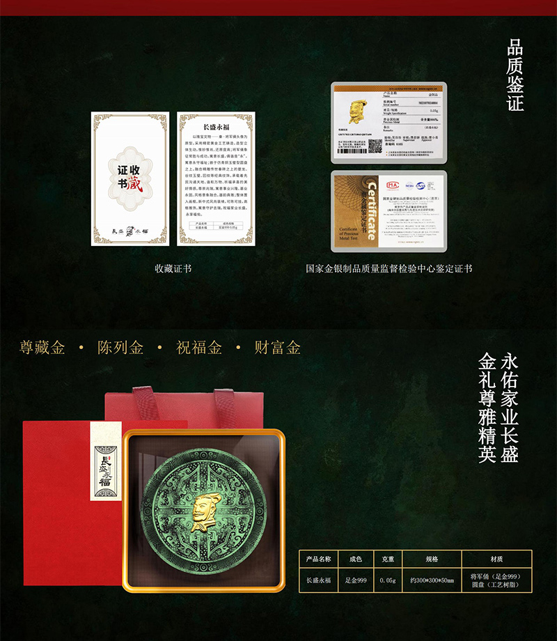 长盛永福秦始皇兵马俑足金摆件 西安文创商务高端礼品 纪念品伴手礼