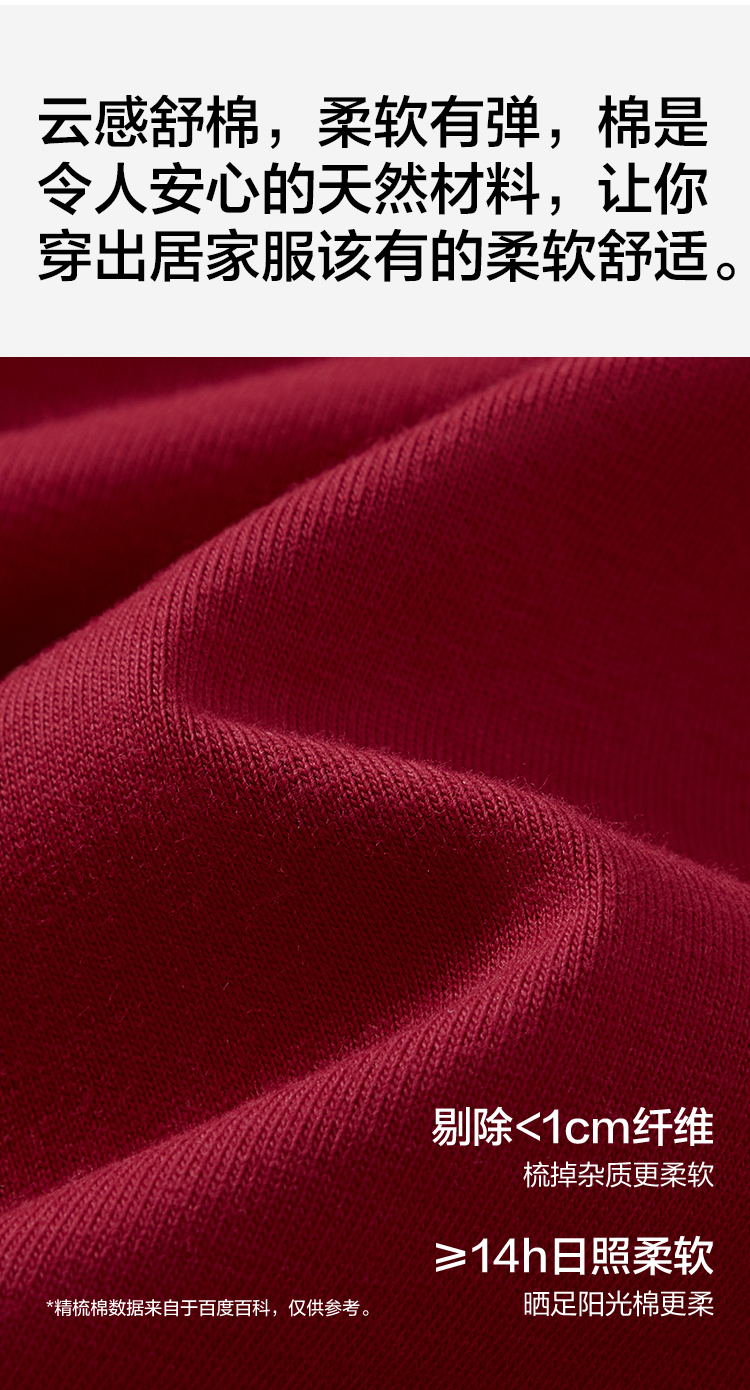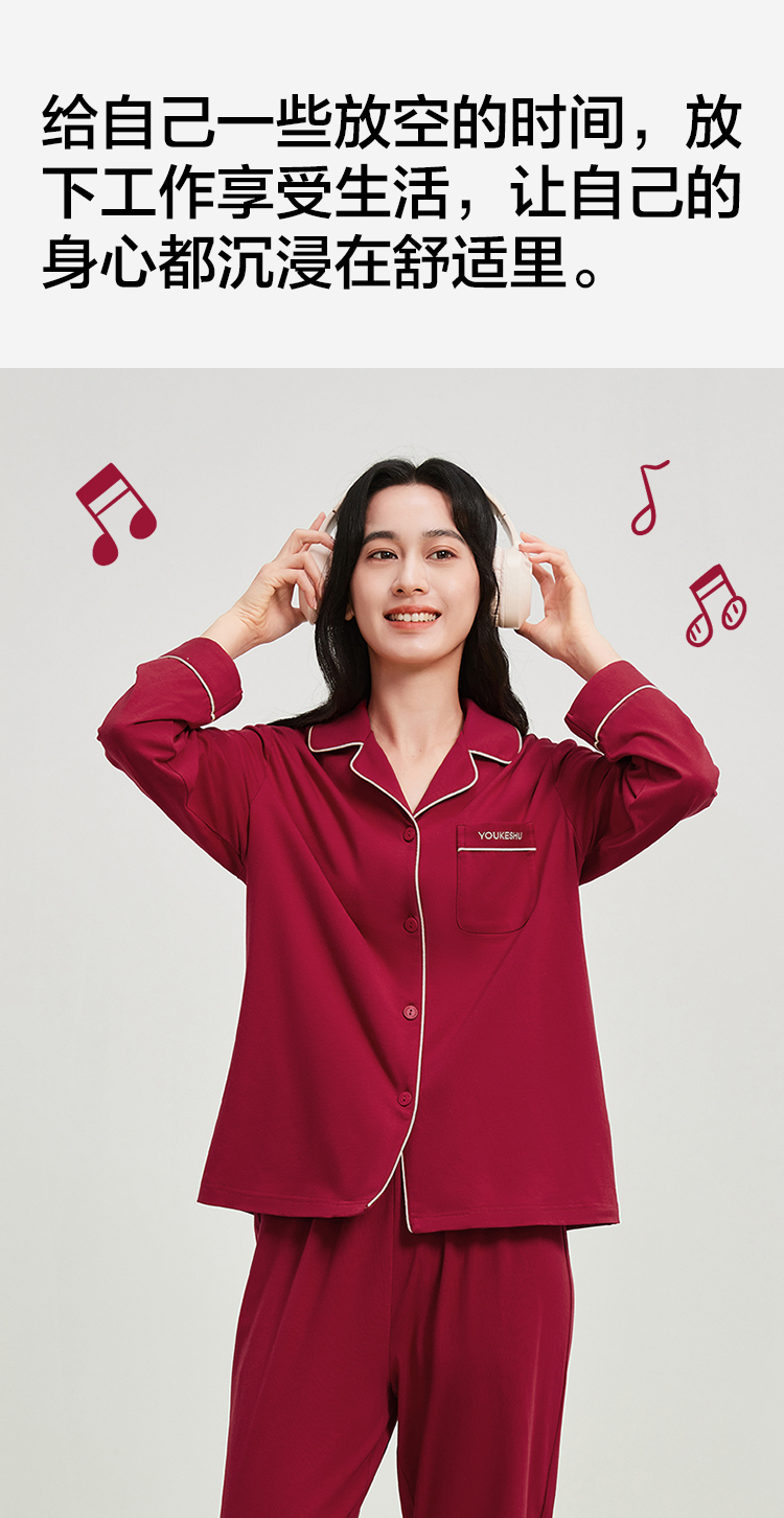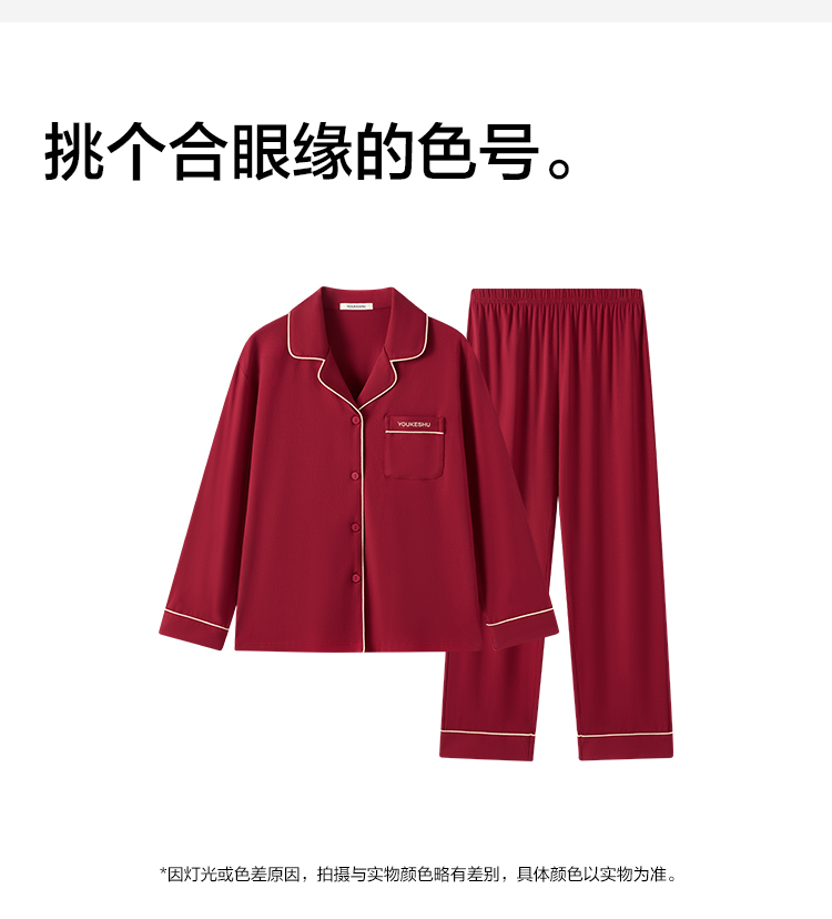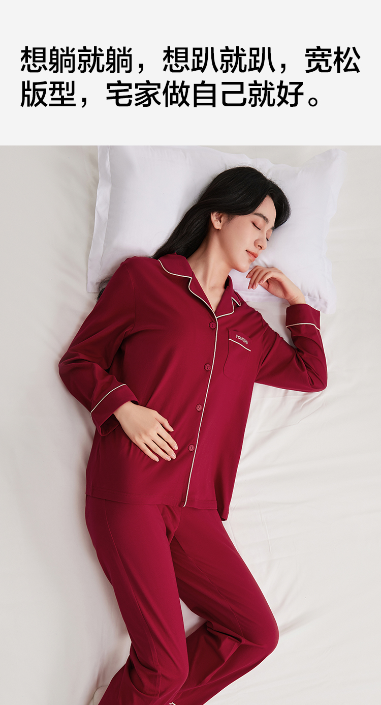 【有棵树】女士长袖开衫家居服女红本命睡衣套装(95%棉 5%氨纶)