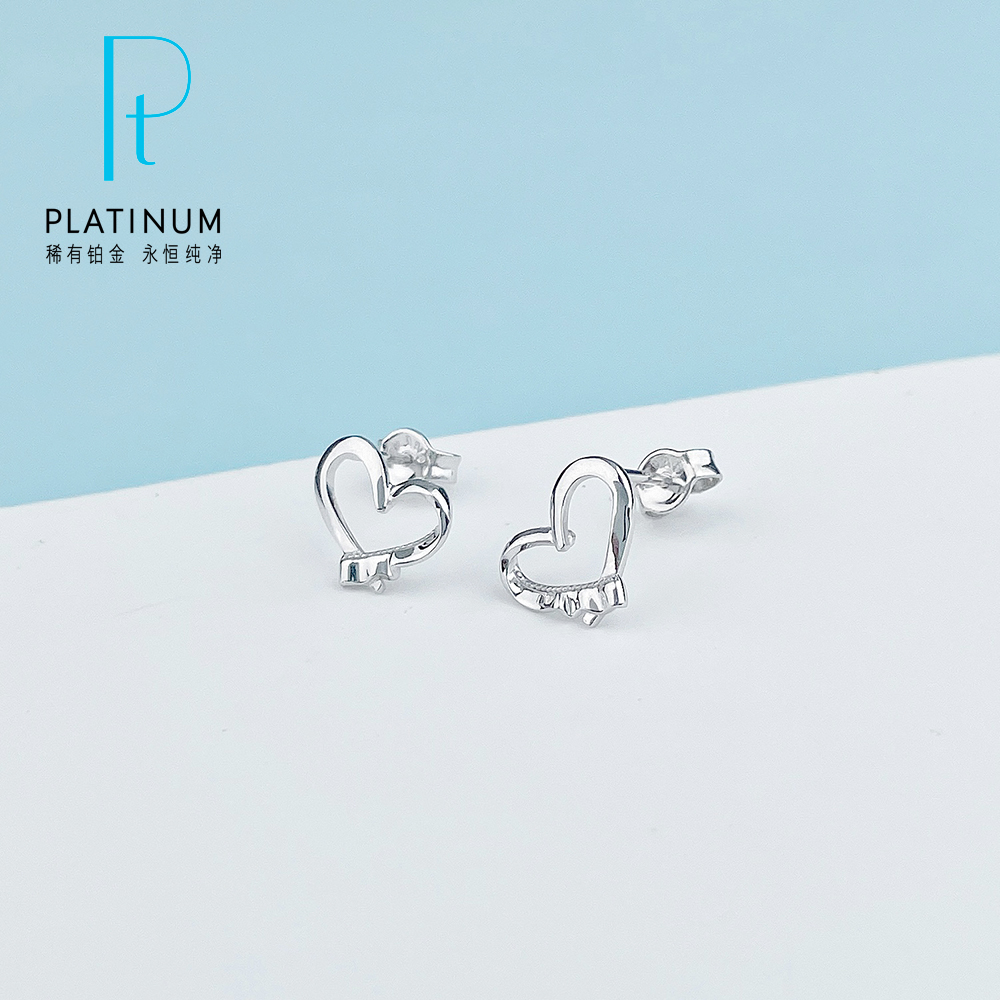 【限时8.8折】【线上铂金馆】PT950 【国际铂金协会】铂金镂空爱心心形耳钉(BES00103)预售产品下单后不退款不退货不换货不补差价)