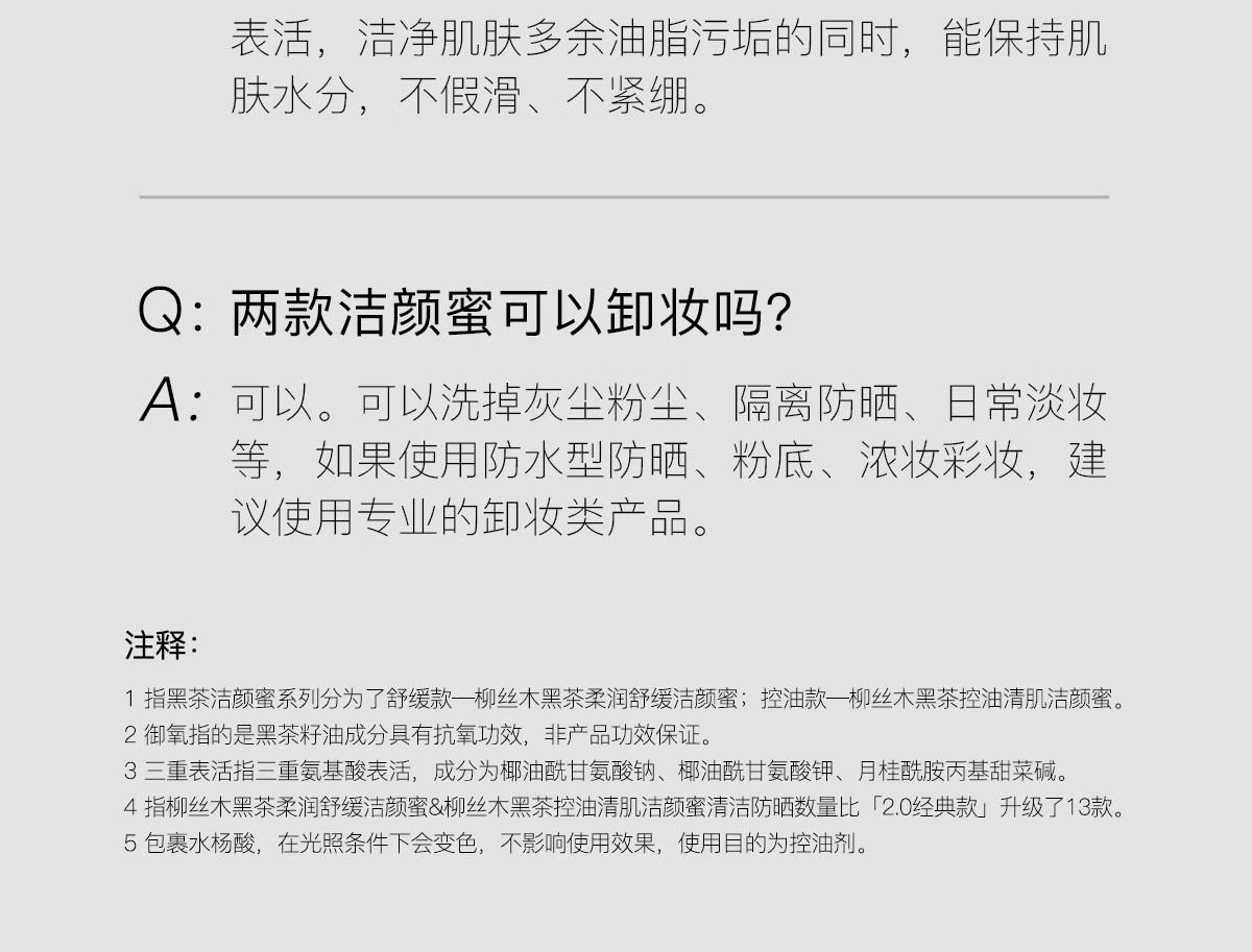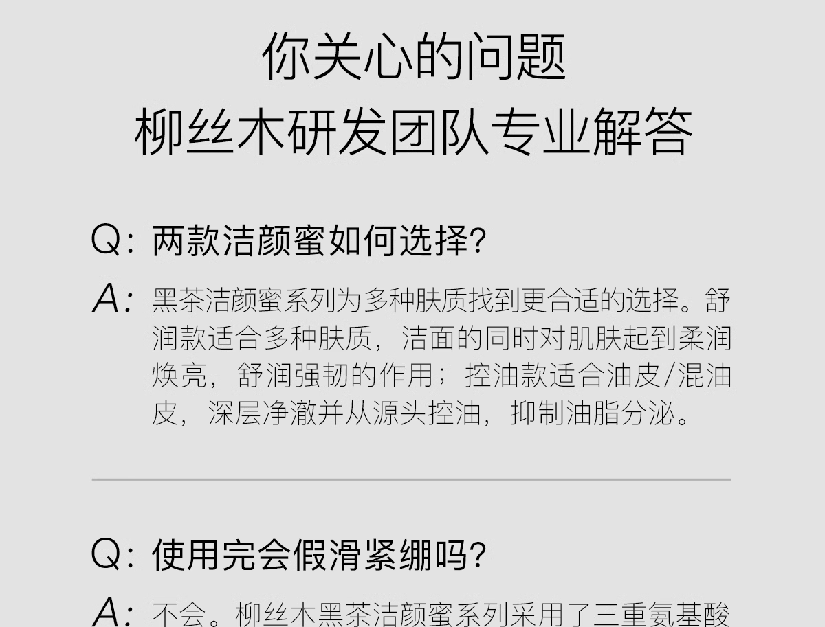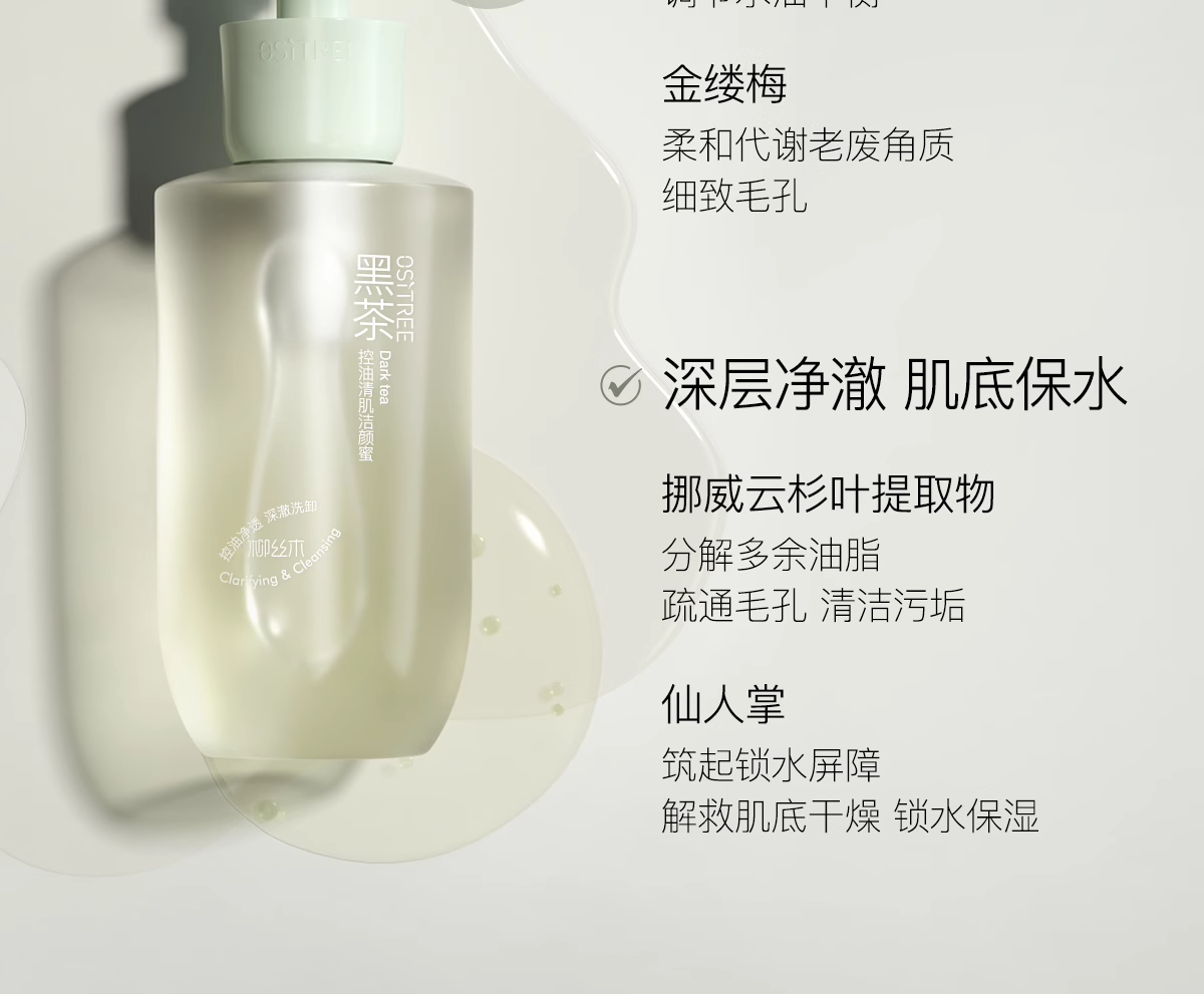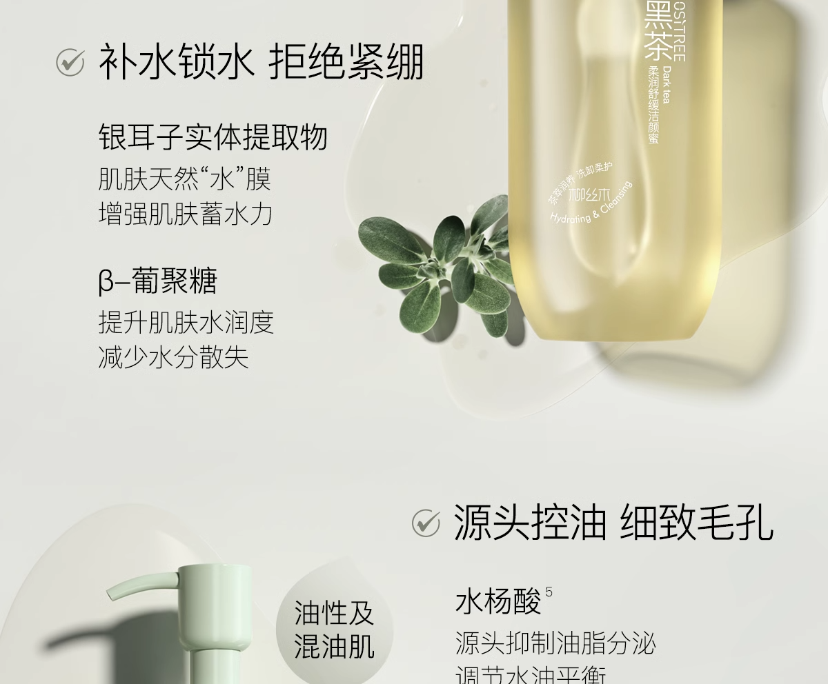 柳丝木黑茶洁颜蜜氨基酸表活洗面奶控油焕亮深层清洁洗卸合一