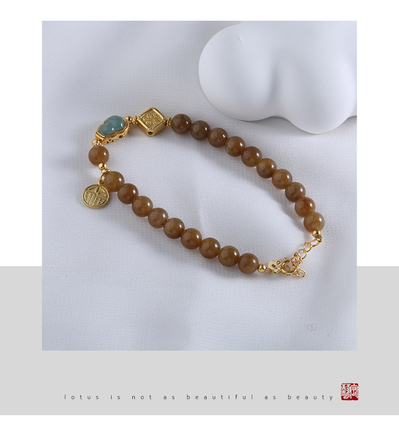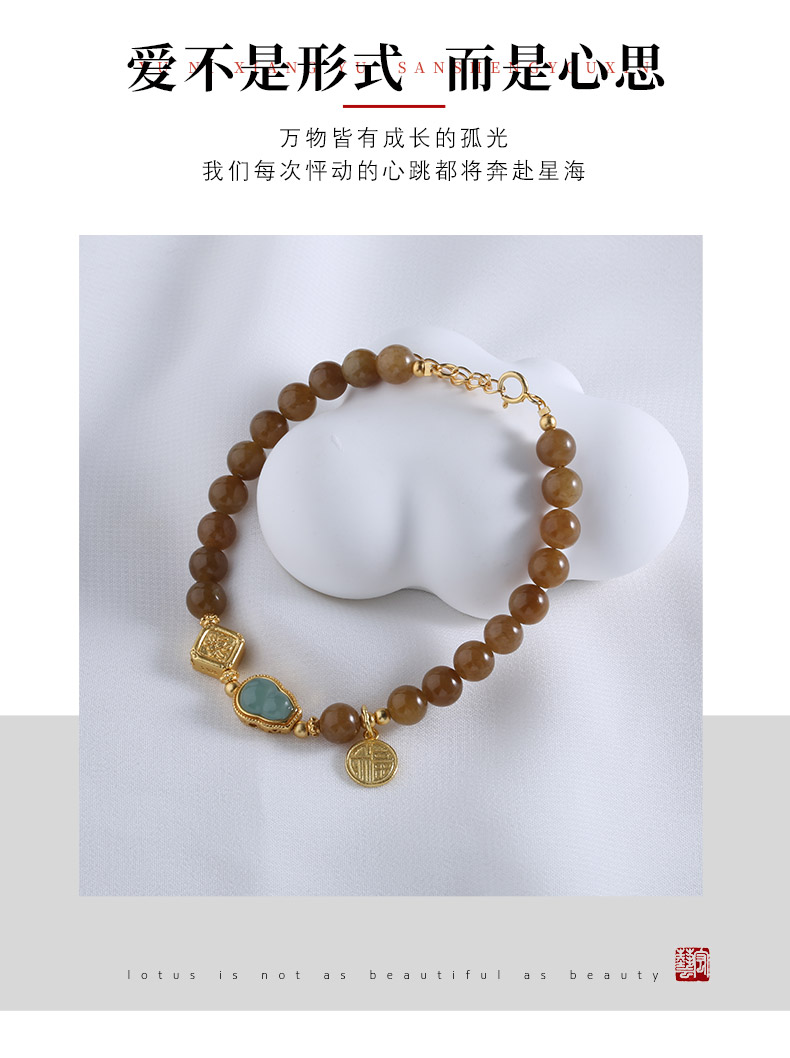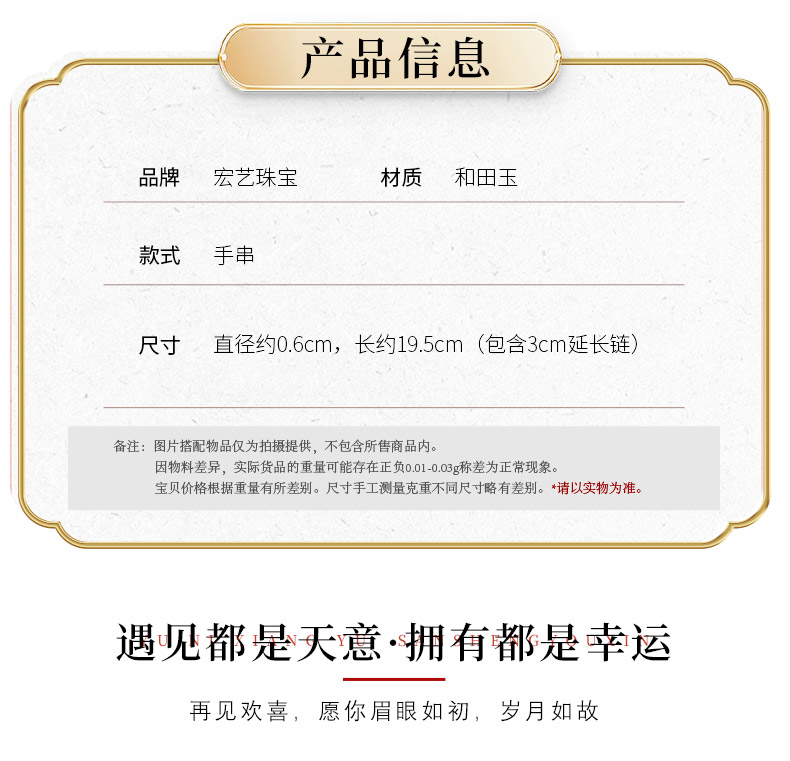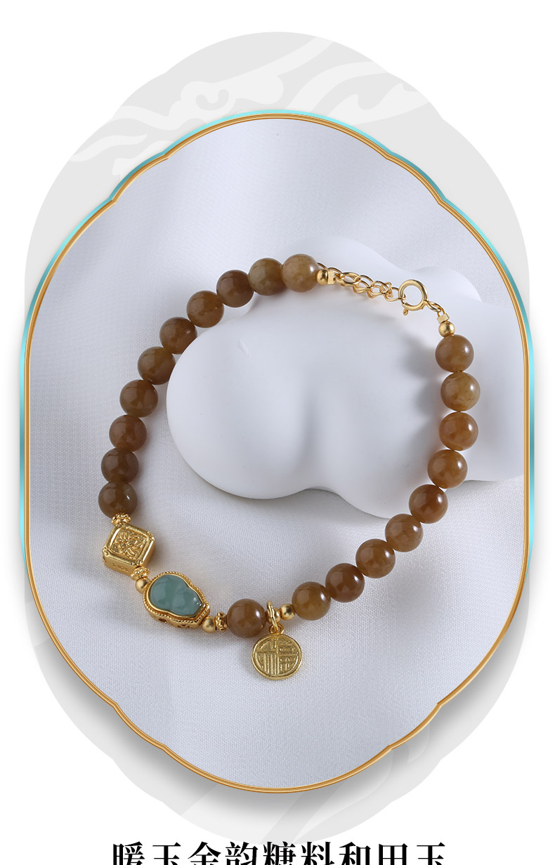 【宏艺珠宝】暖玉金韵福串糖料和田玉银镶嵌危料翡翠·银s925和田玉手串﹝主体为晶石类、天然玉石类产品不支持以旧换新﹞