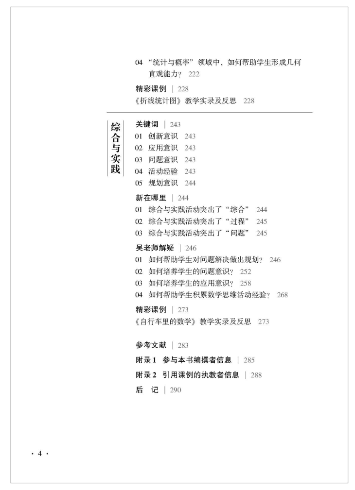 吴正宪团队的教师们,并不是仅仅钻研新课标的文本,而是结合自己的课堂,结合自己的经验体会,借鉴大量的课例来解读新课标,使得新课标的理念和要求有了实际的载体。