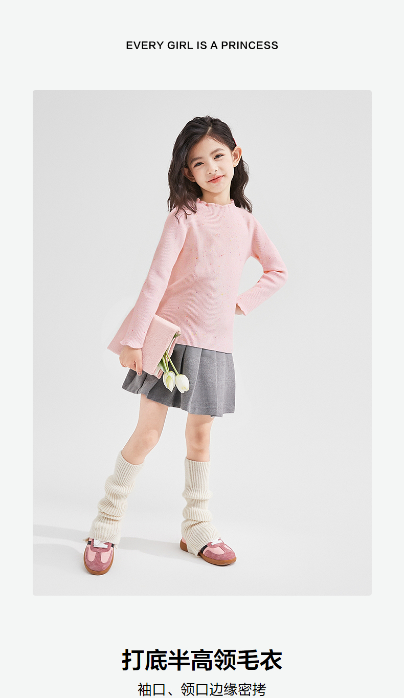笛莎Deesha 童装女童毛衫2025冬新款女童打底半高领毛衣