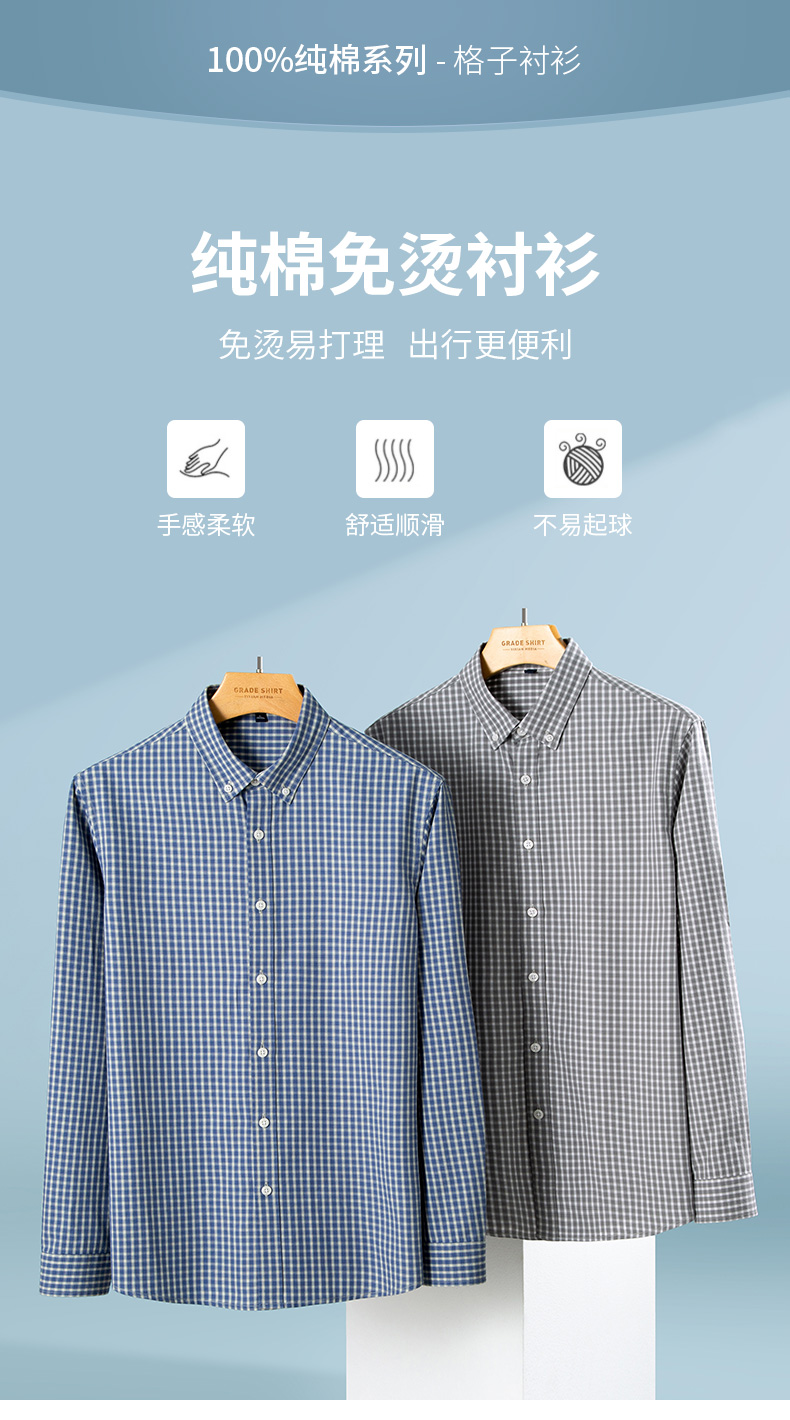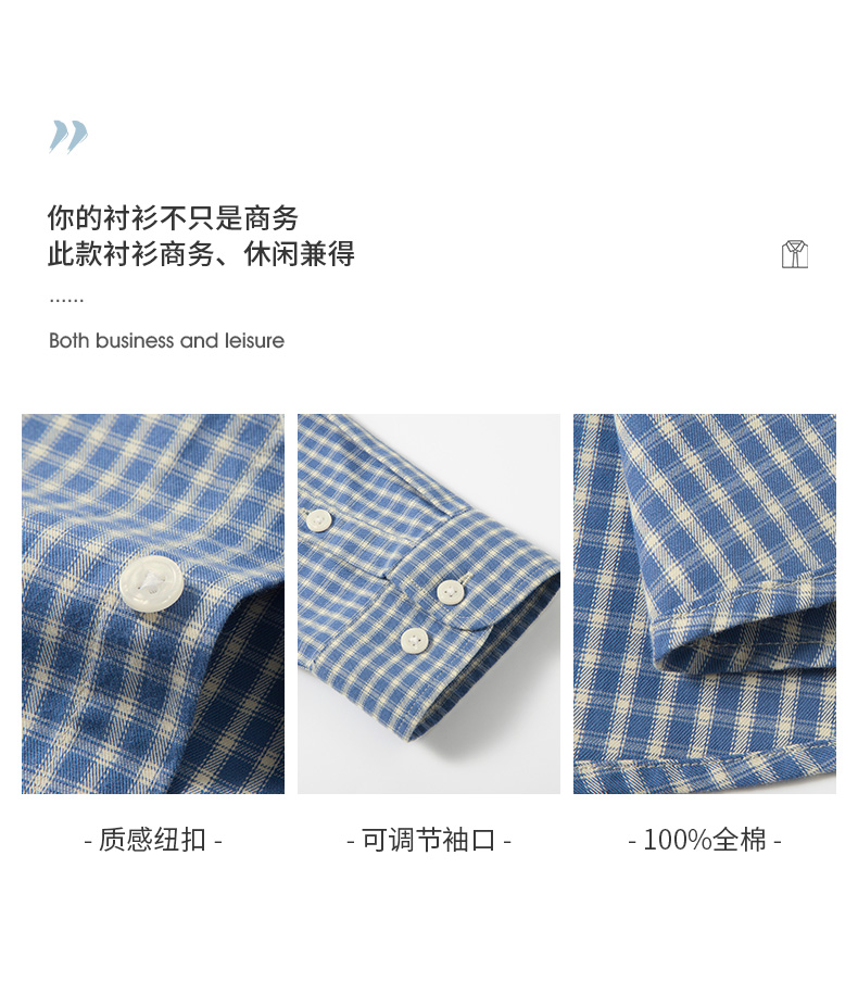 赤兔嗨购纯棉宽格子长袖衬衫男2024秋季新款休闲格子百搭上衣商务免烫男士衬衣通勤风