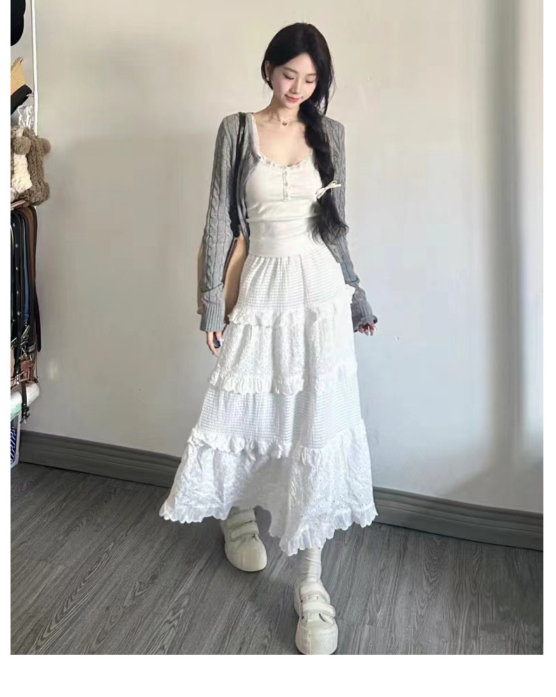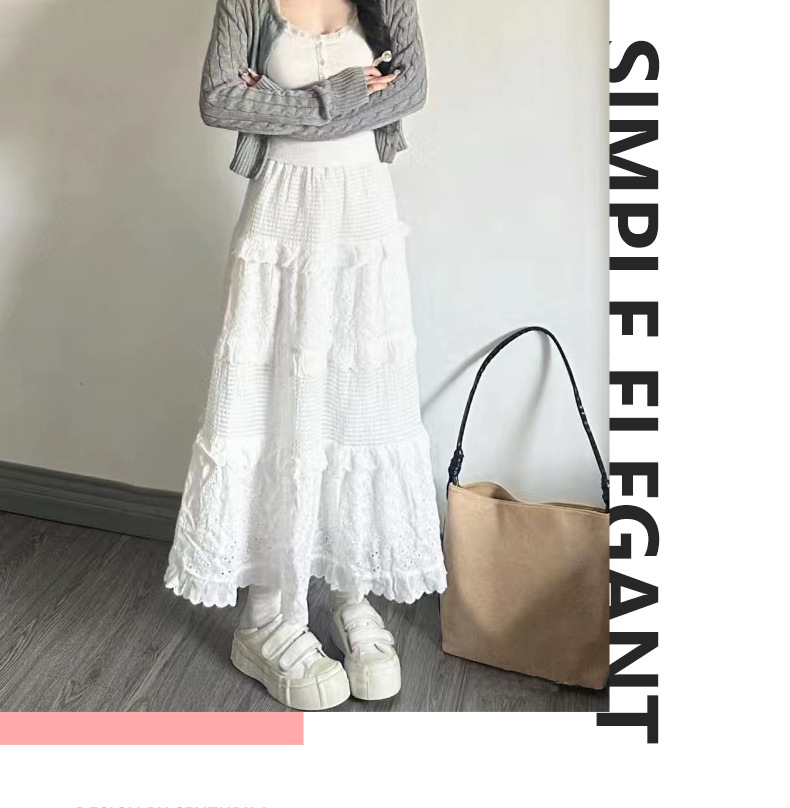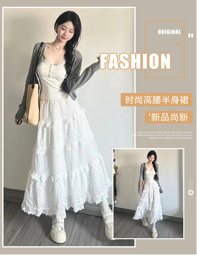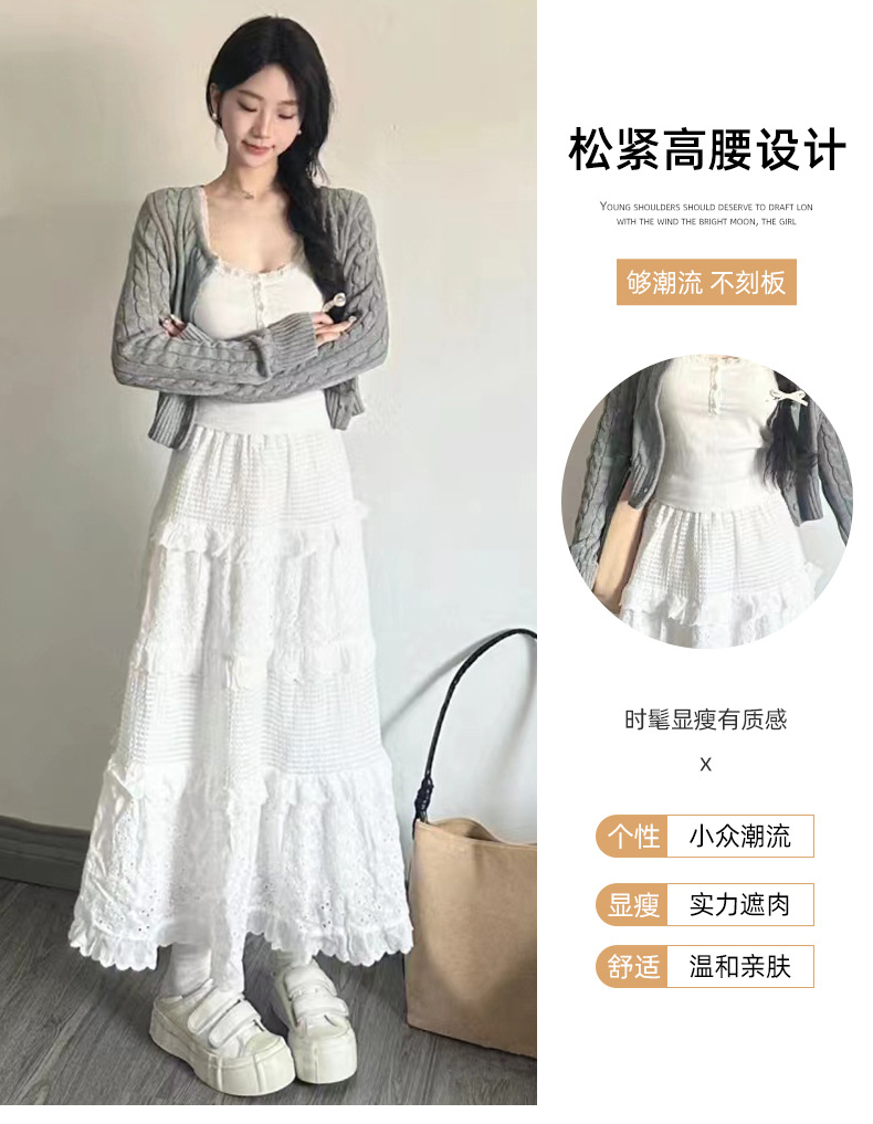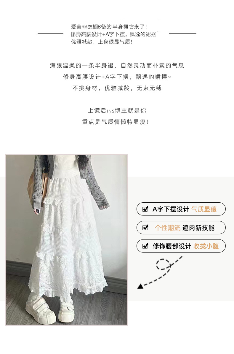 白色蛋糕裙女【春秋夏2025新款 高腰蓬蓬裙蕾丝中长款】a字法式半身裙