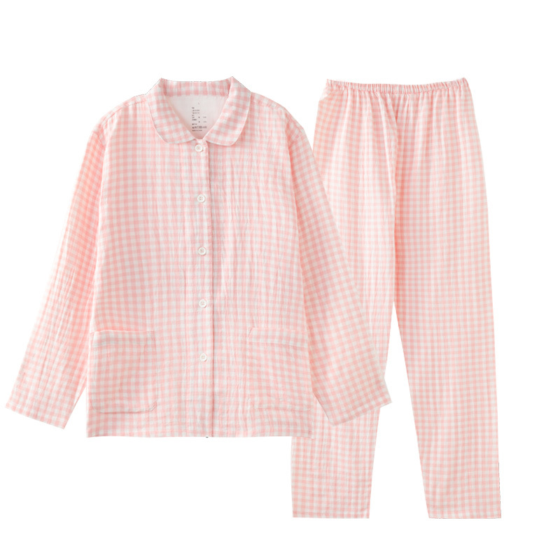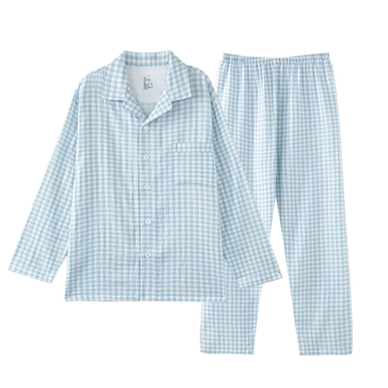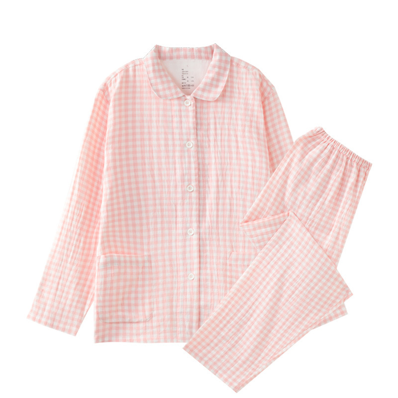 【双层纱长袖长裤家居服】全棉双层纱家居服糖果纯棉睡衣套装长袖情侣家居服