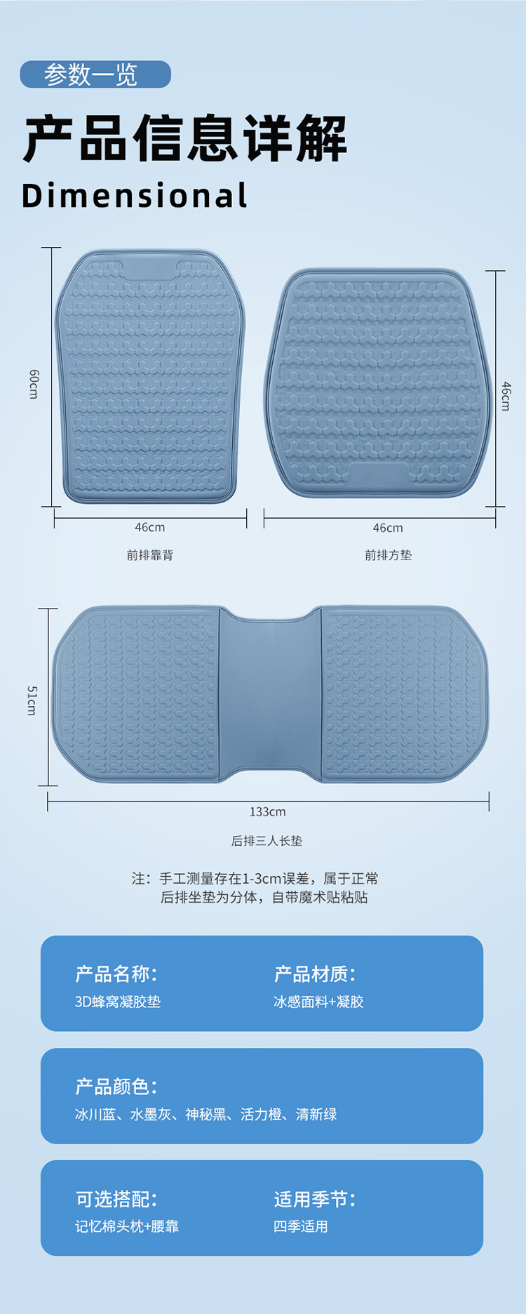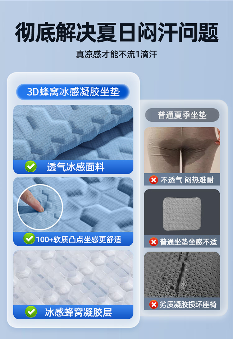 汽车坐垫夏季凉垫单片冷凝胶座垫透气冰丝硅胶四季通用车垫子冰垫