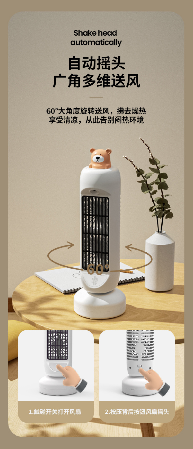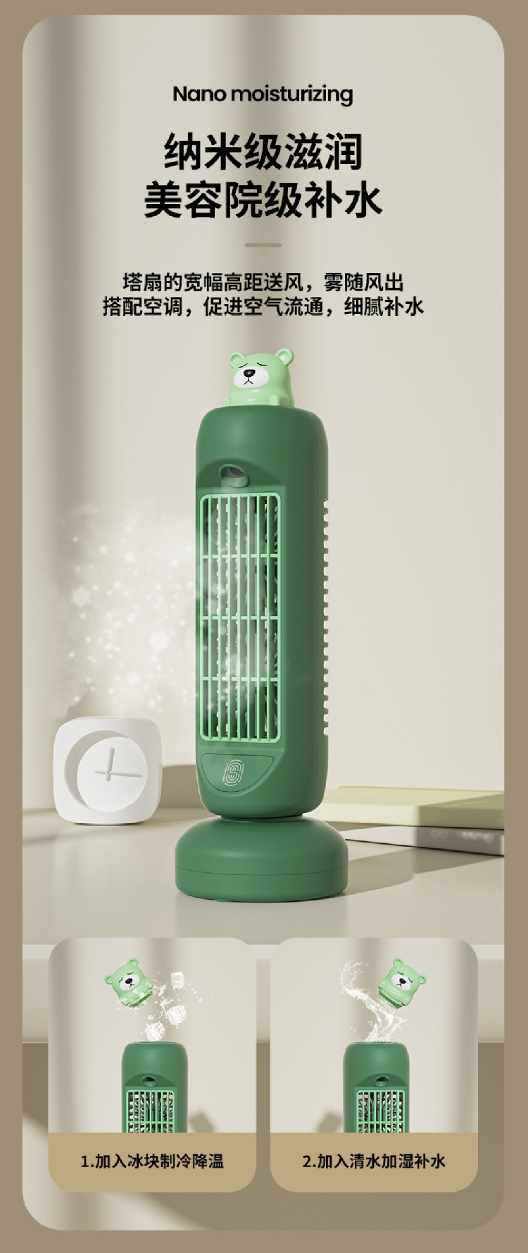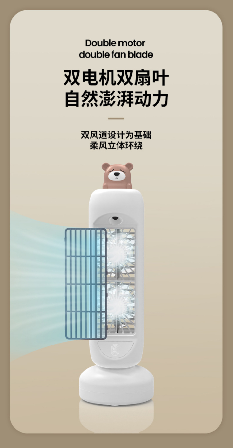 【摇头喷雾双风扇】新款双电击风扇塔型空调扇 办公家用USB充电桌面小风扇