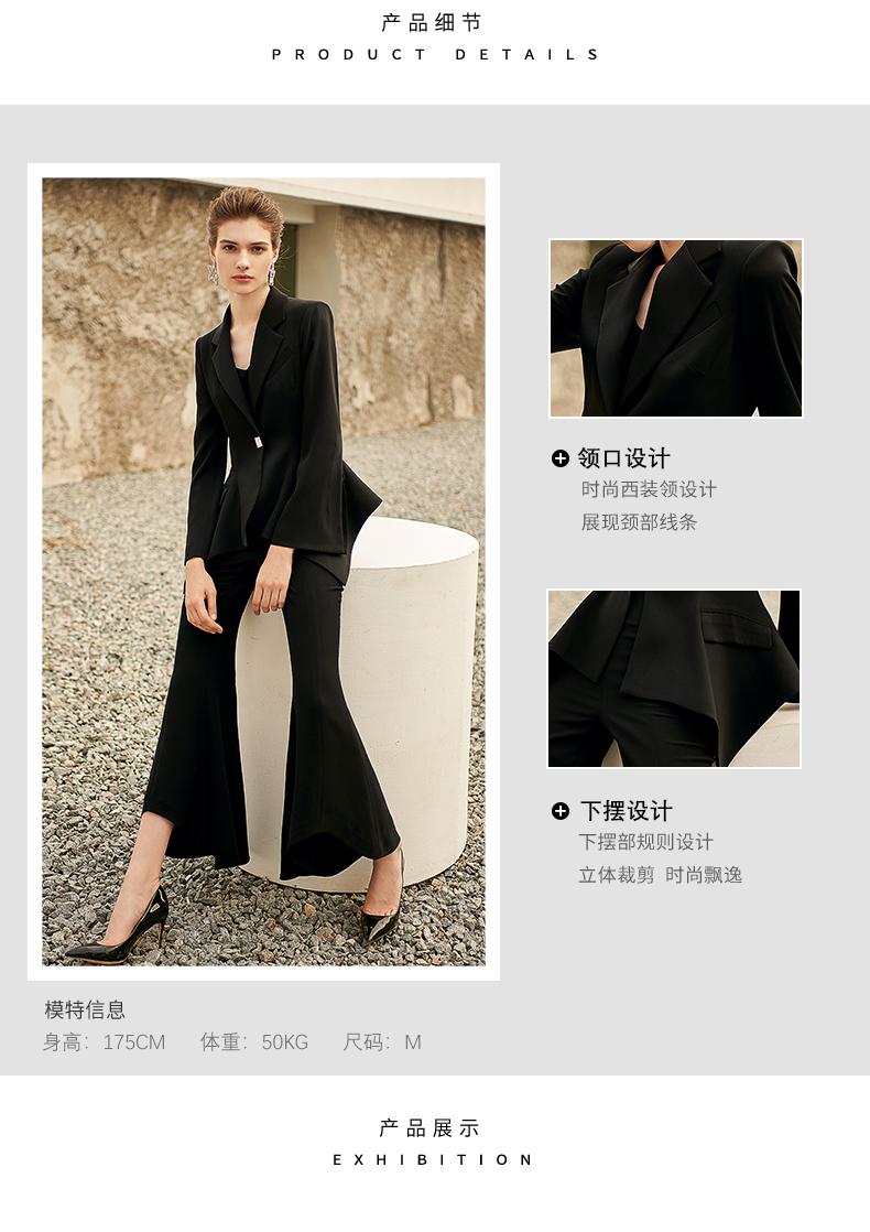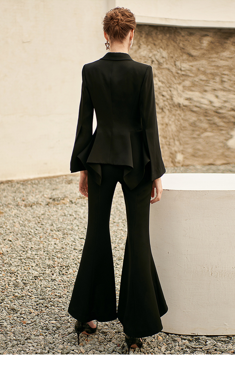 IWY/高端时尚西装气质名媛商务宴会正装修身西服微喇裤套装211010C1+P3