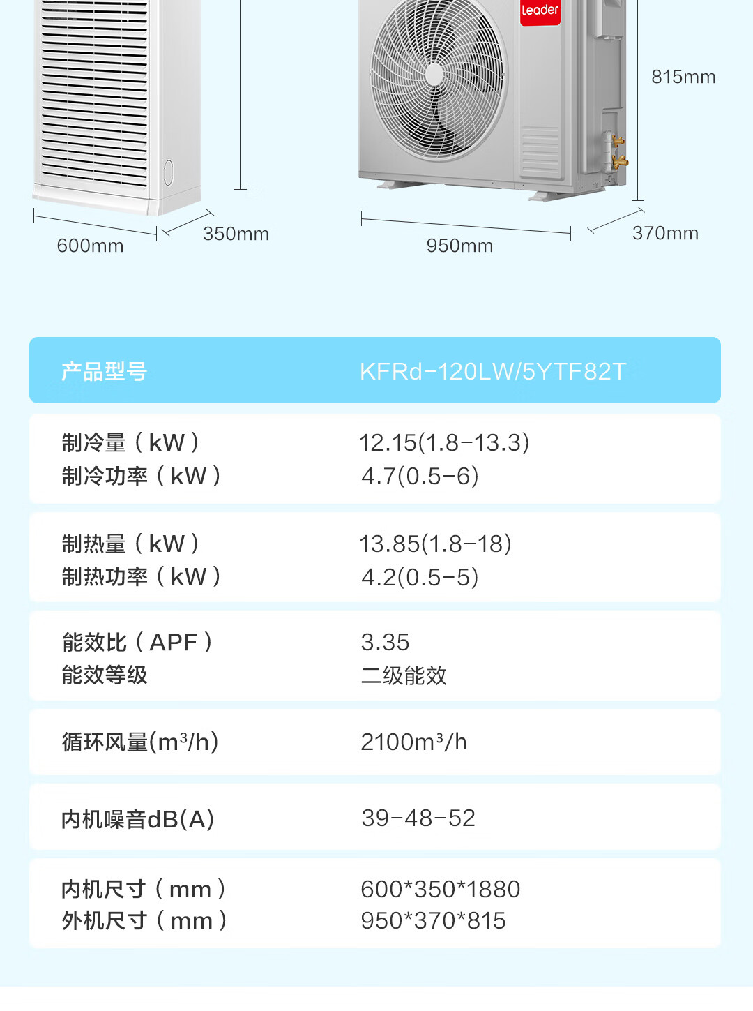 统帅(Leader)中央空调5匹立式空调 商用柜机 冷暖新二级能效 KFRd-120LW/5YTF82T