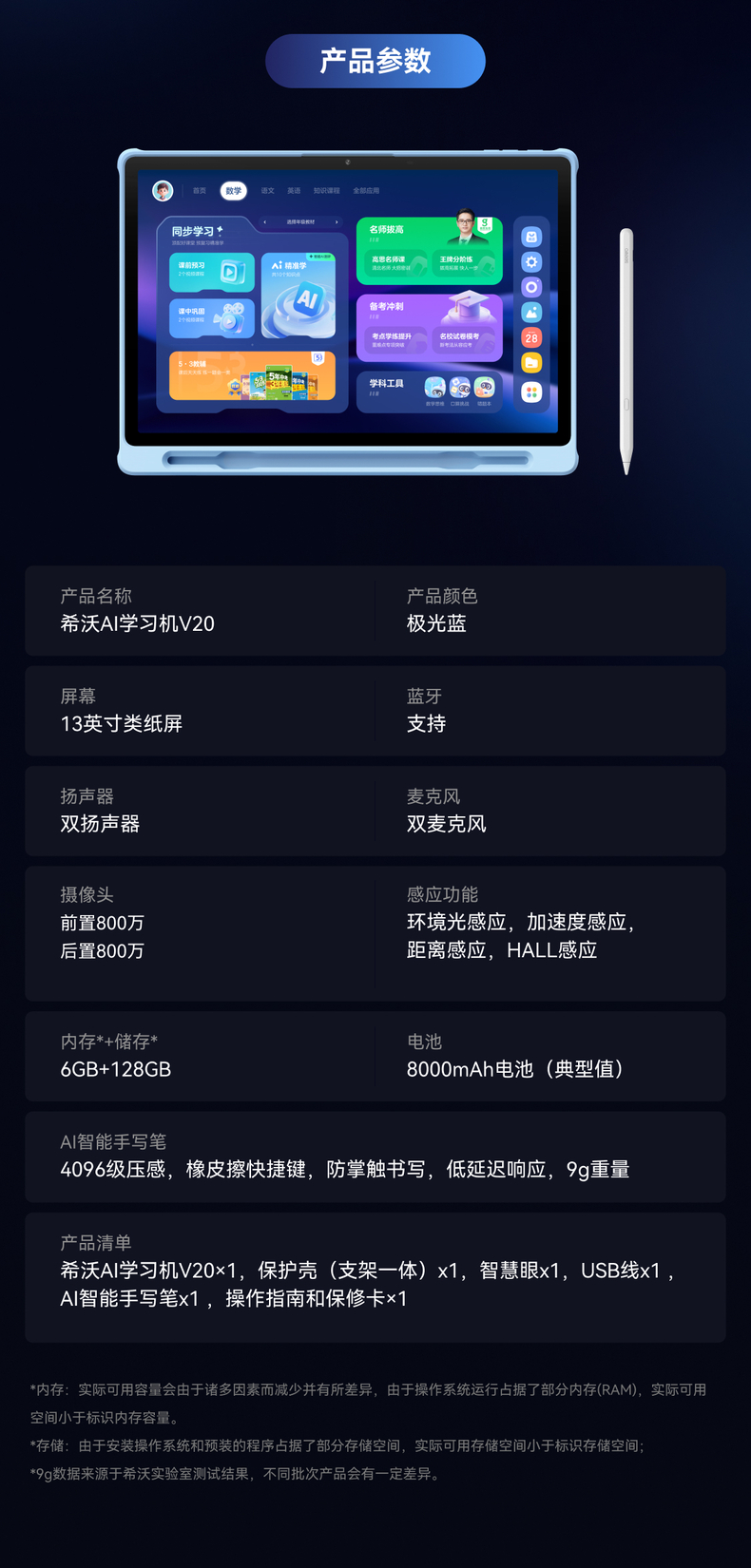 【李点点专享】希沃护眼学习平板V20 AI学习机 学练机 早教机