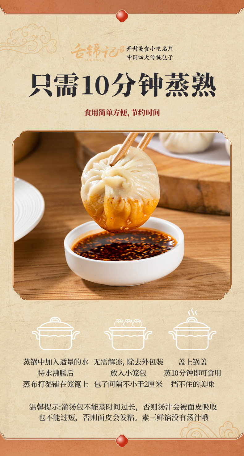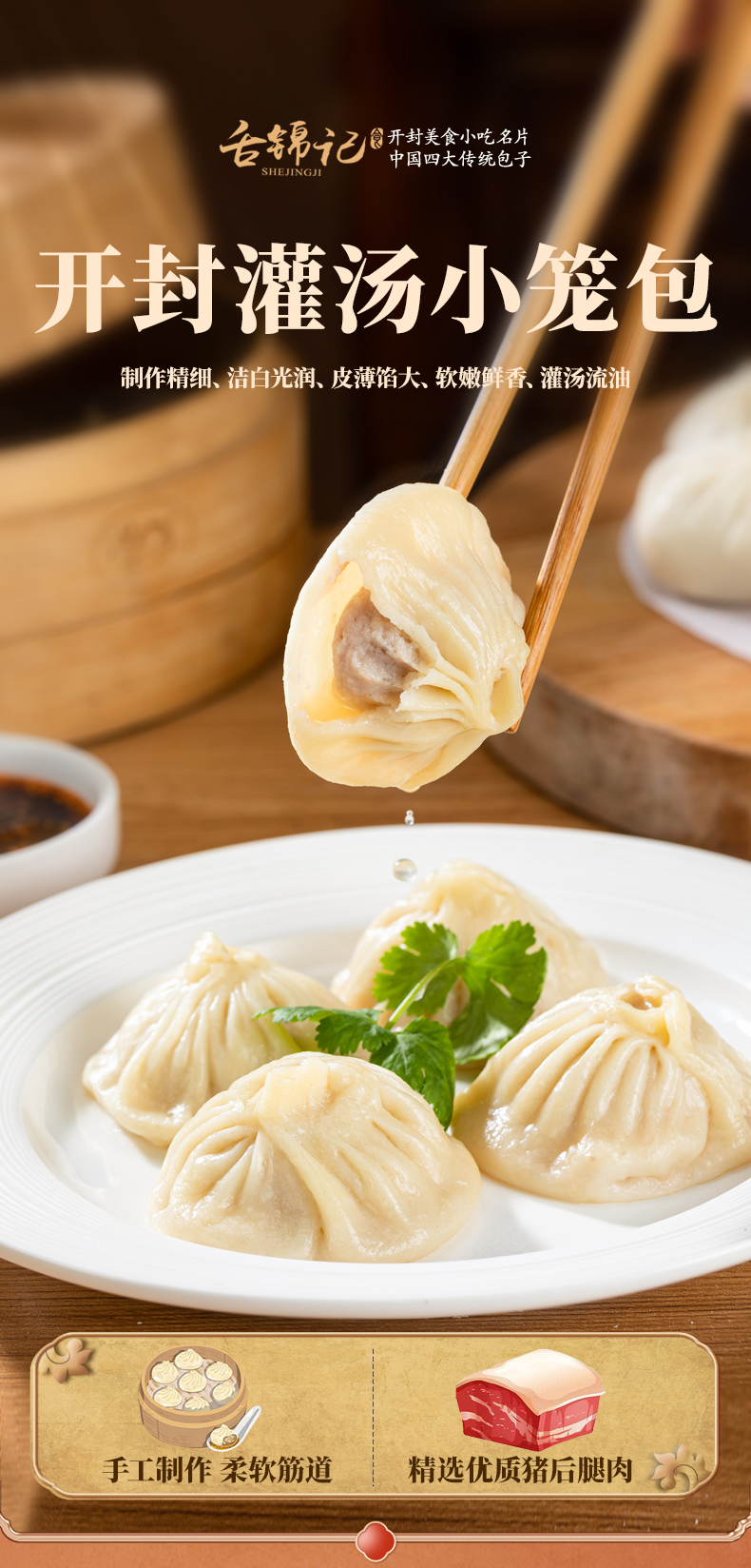 【非遗美食 纯手工制作】董宇辉力荐 舌锦记开封灌汤小笼包 一口爆汁 清爽不腻 水馅工艺 一口到汴梁