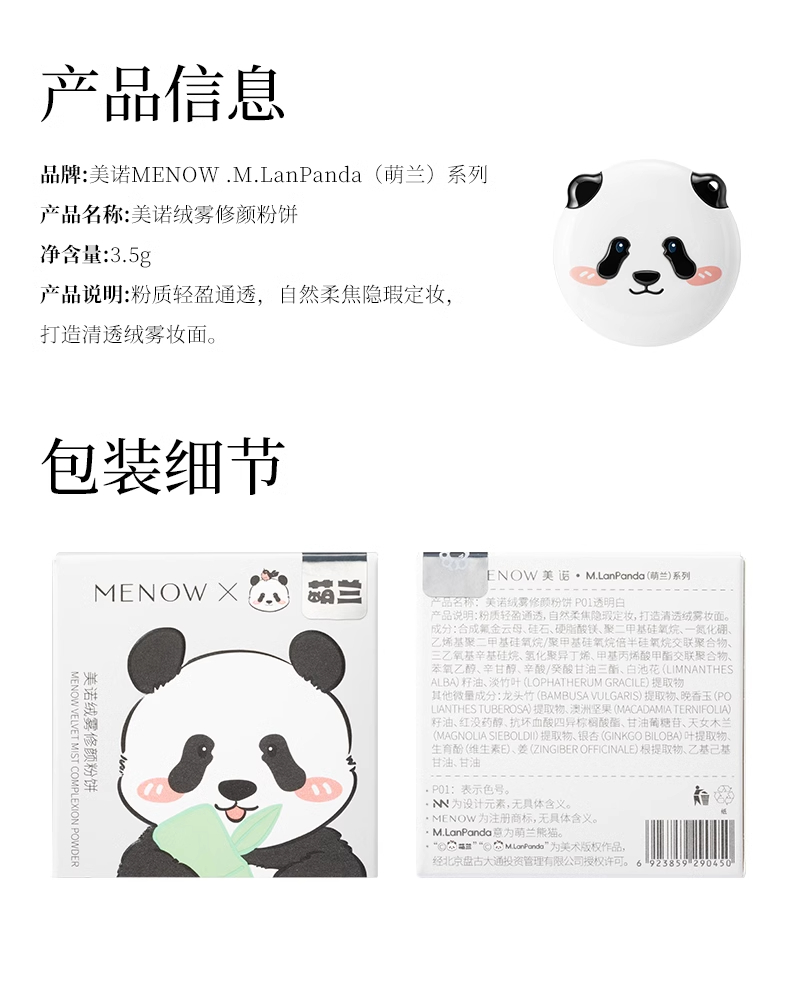 【便携装】美诺萌兰4g限定迷你粉饼柔雾修颜粉饼控油遮瑕哑光