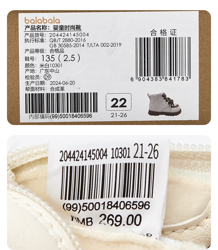 巴拉巴拉童鞋儿童靴子马丁靴女童文艺小皮靴秋冬短靴潮流爱心撞色