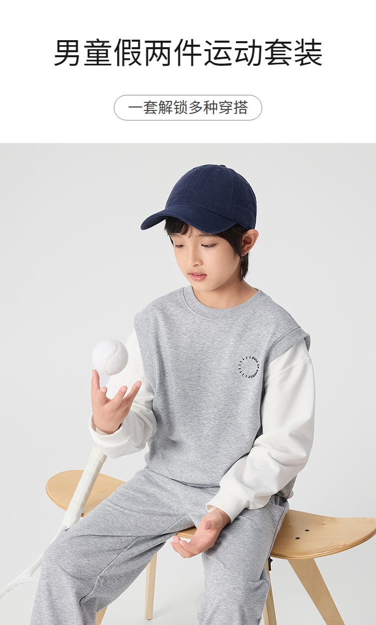 巴拉巴拉童装男童长袖套装儿童运动服2025新款春装假两件都市时尚