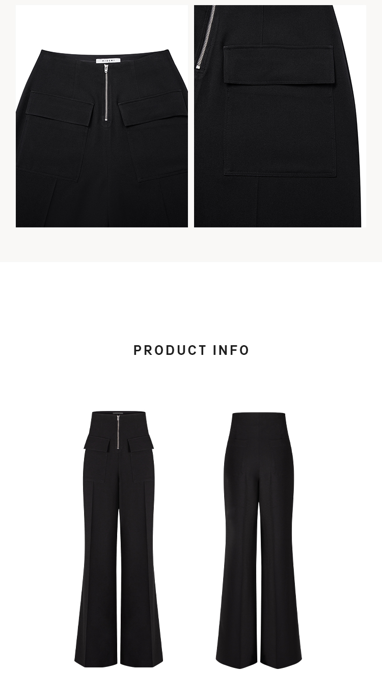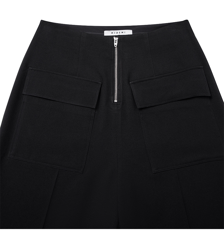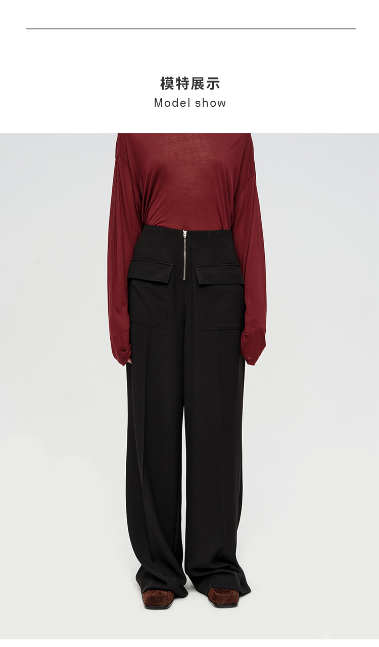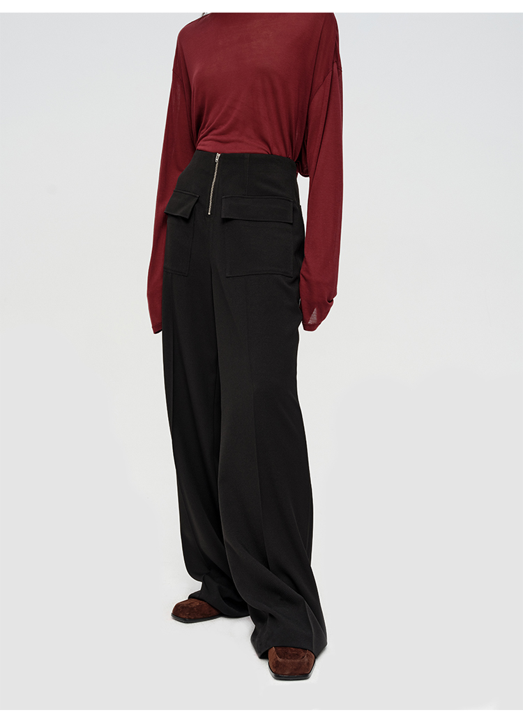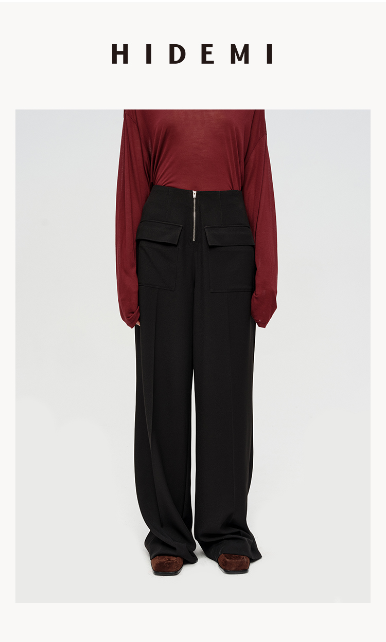 HIDEMI极简显瘦高腰带盖拉链提臀阔腿直筒垂顺长裤