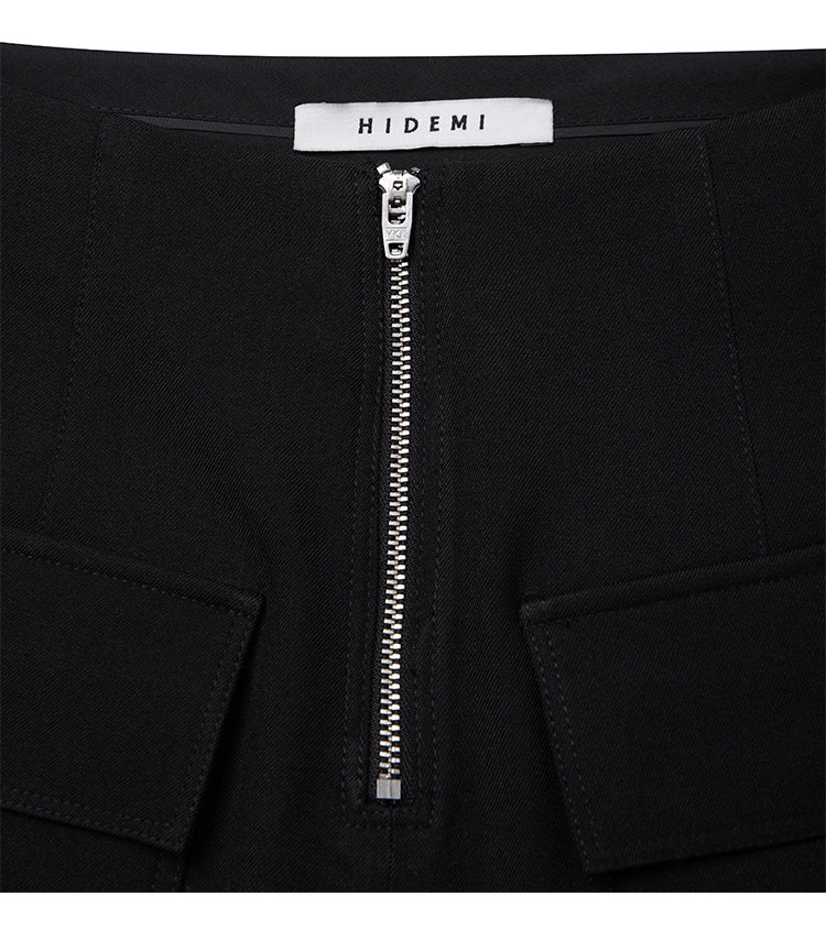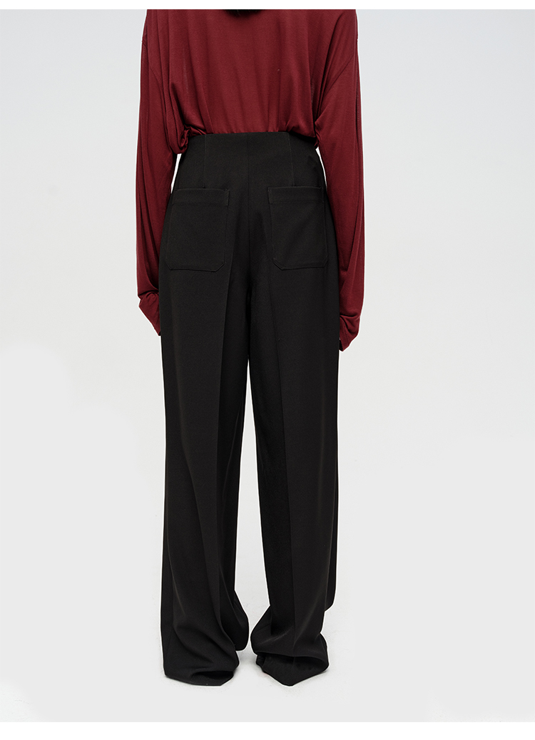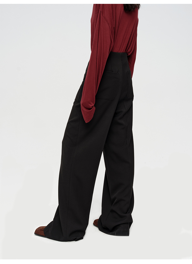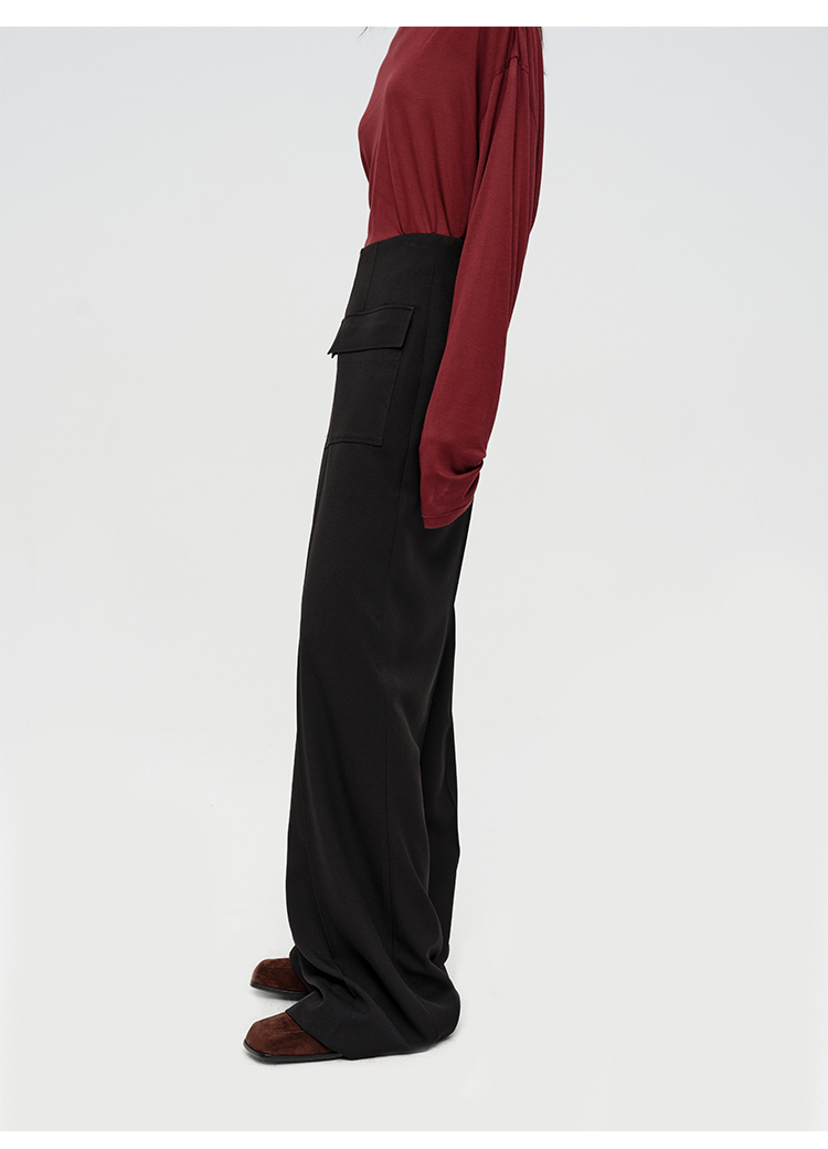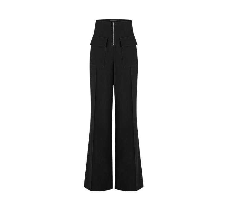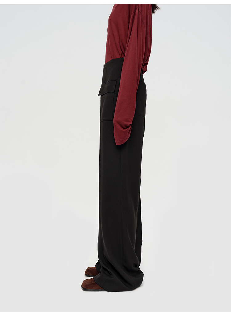 HIDEMI极简显瘦高腰带盖拉链提臀阔腿直筒垂顺长裤