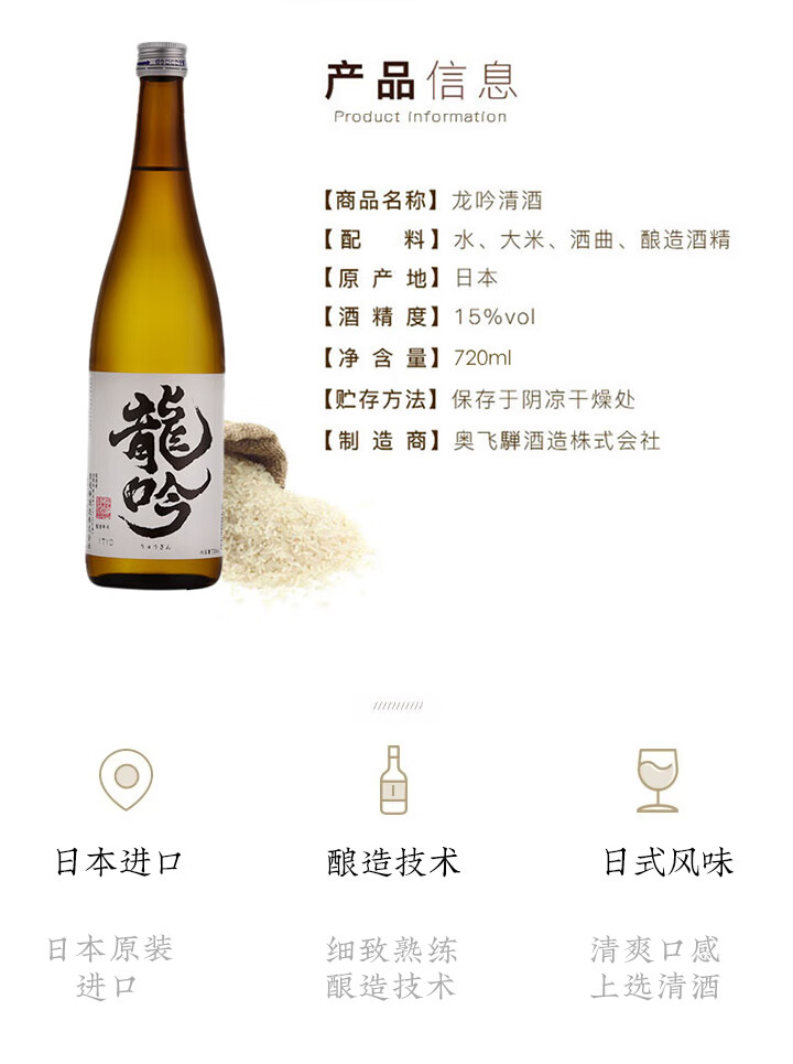 日本清酒 奥飞騨龙吟清酒720ml 低度微醺发酵纯米酒