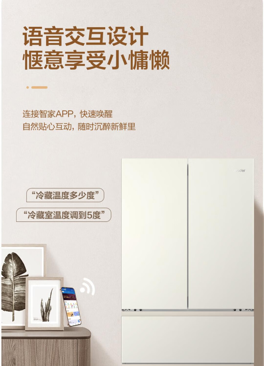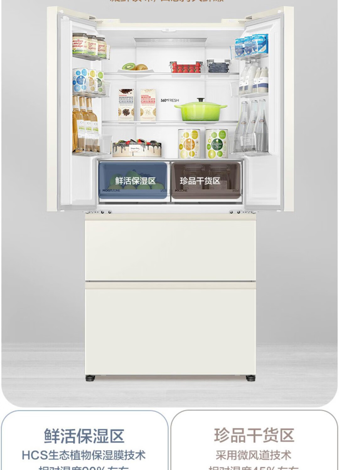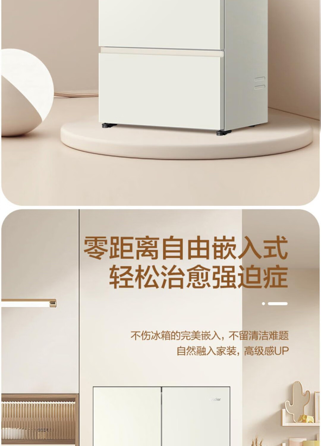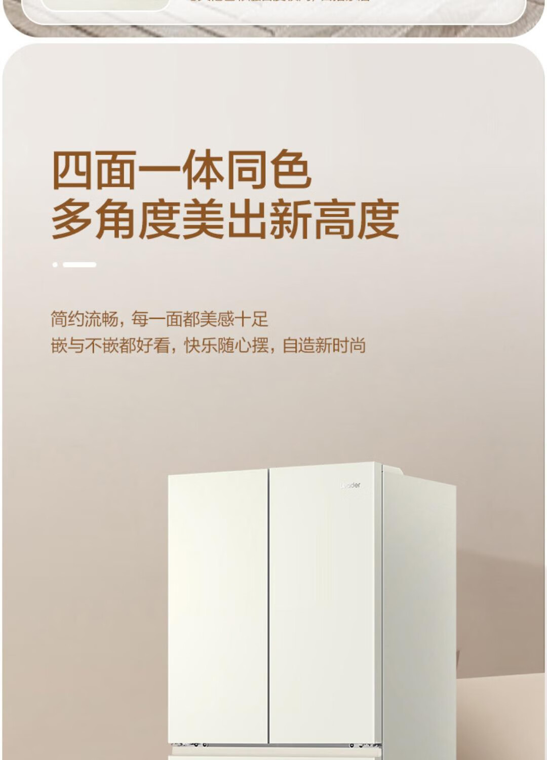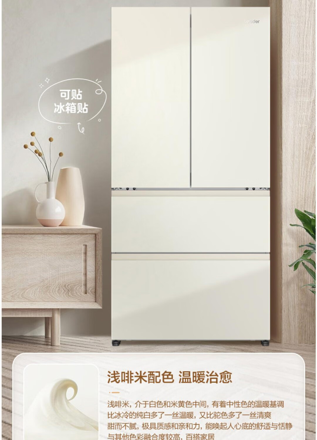 统帅【新品】海尔冰箱出品463升嵌入式家用白色薄法式多开门四门风冷无霜一级电冰箱 奶油风+二代变频技术+干湿分储+三档变温BCD-463WGLTD45Y9U1