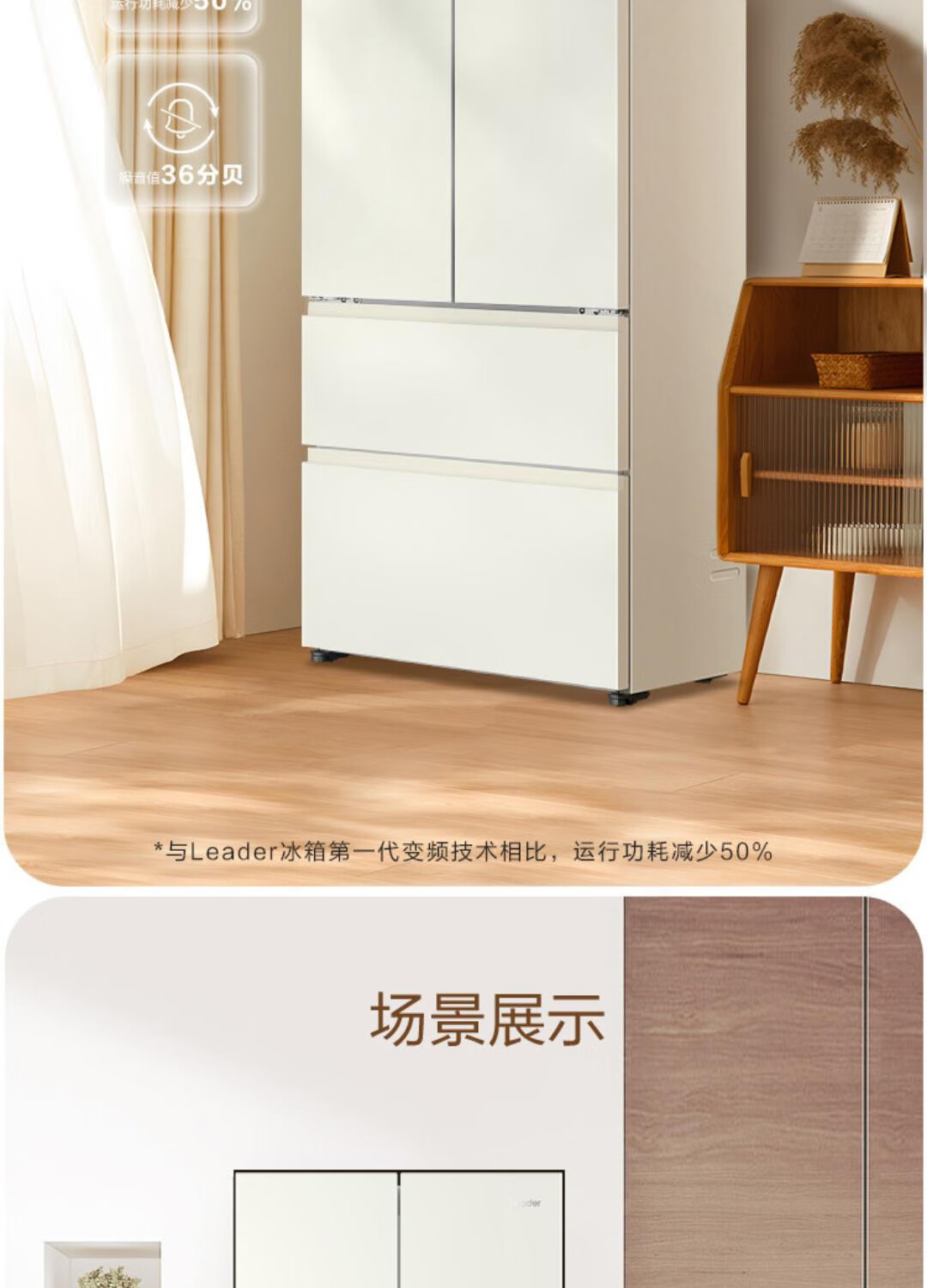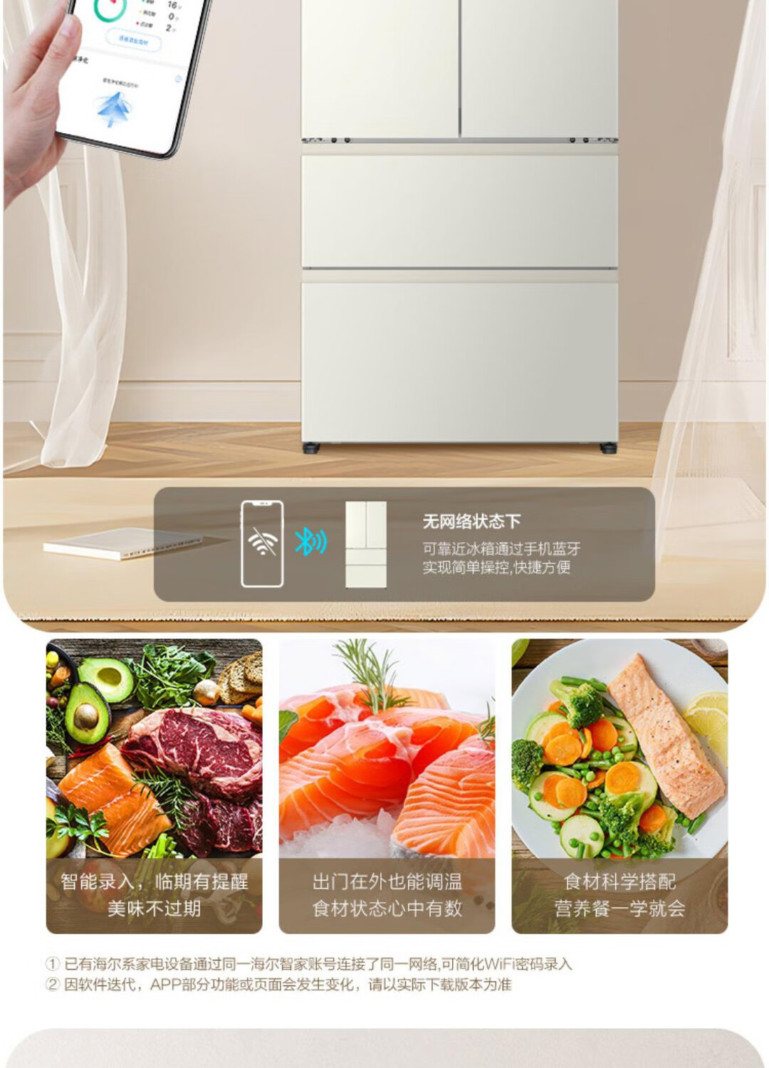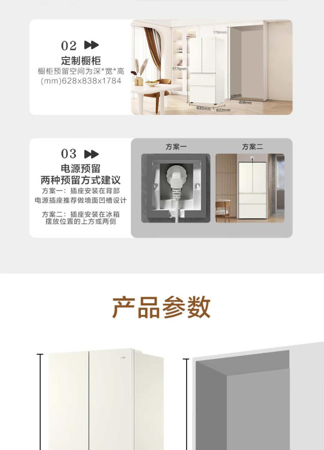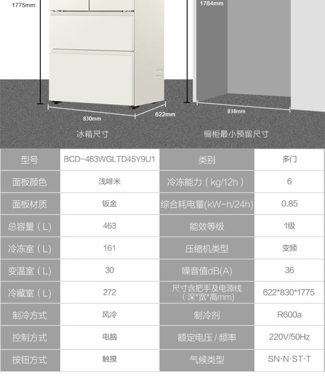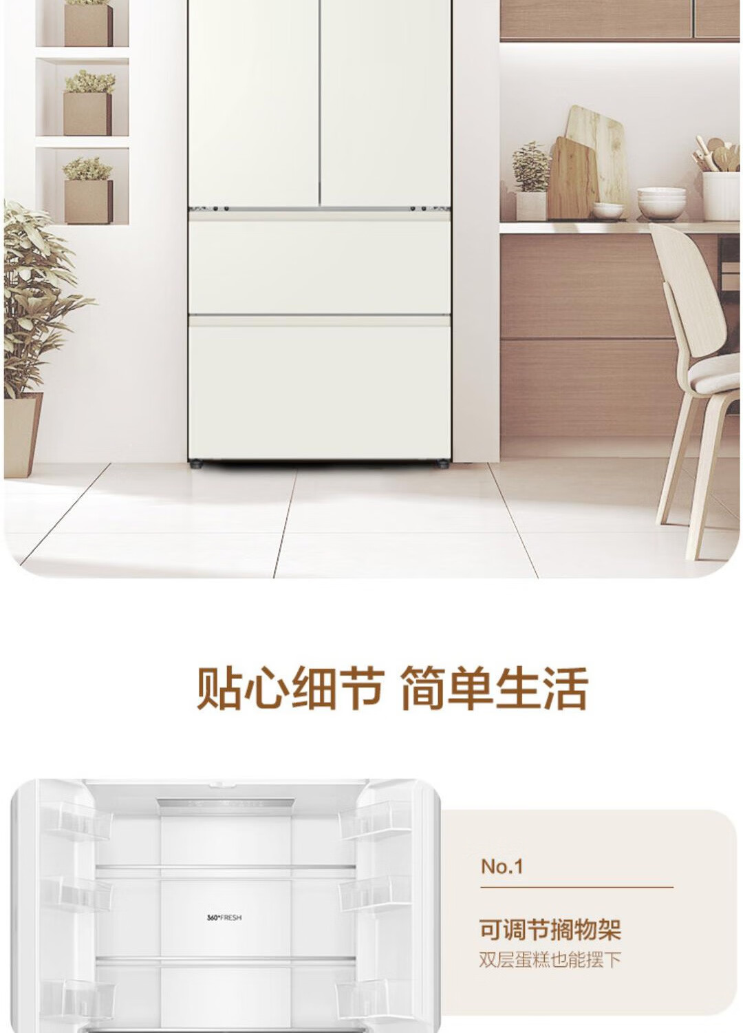 统帅【新品】海尔冰箱出品463升嵌入式家用白色薄法式多开门四门风冷无霜一级电冰箱 奶油风+二代变频技术+干湿分储+三档变温BCD-463WGLTD45Y9U1