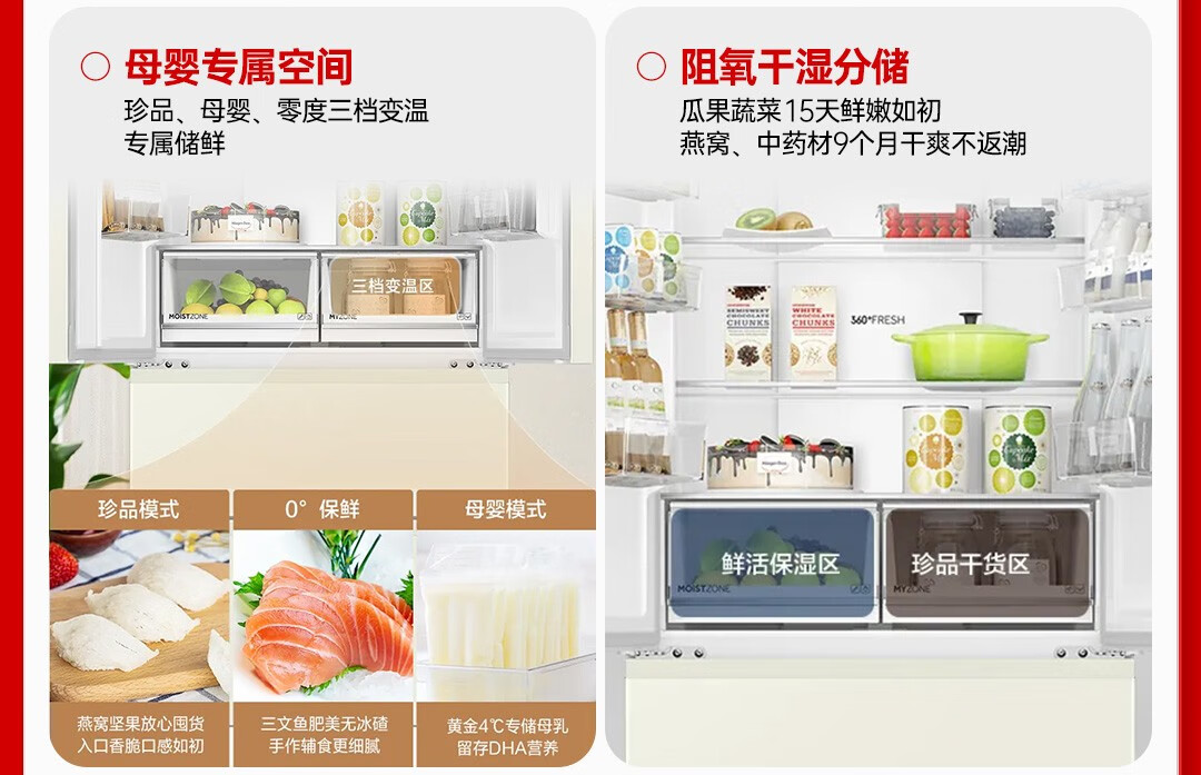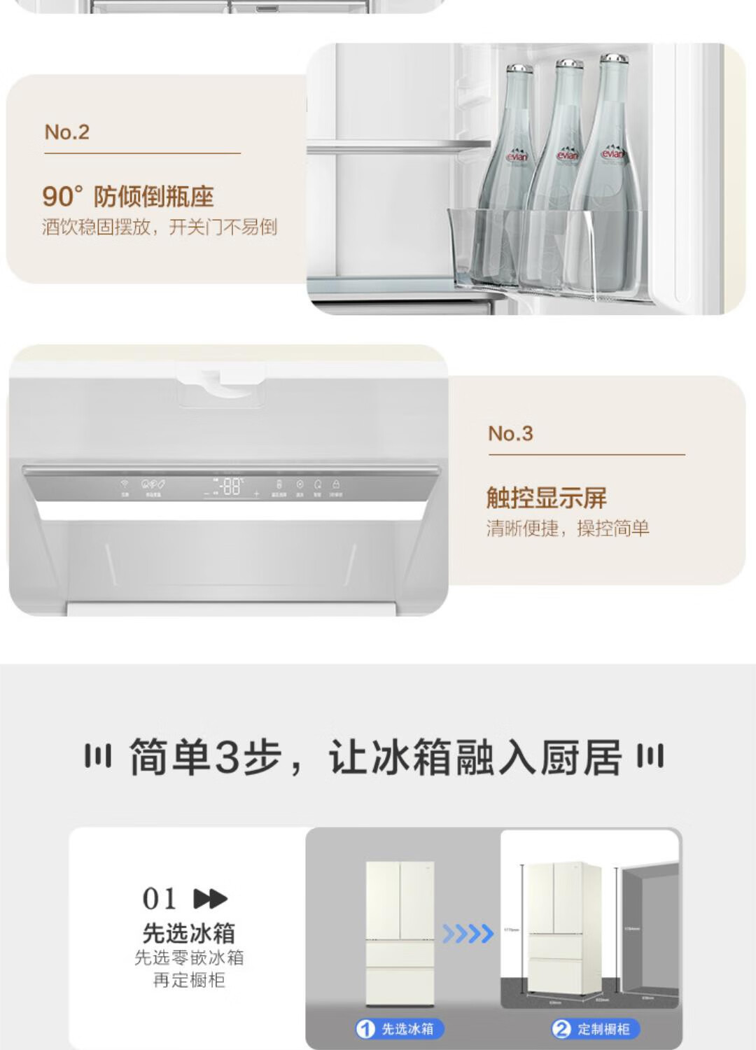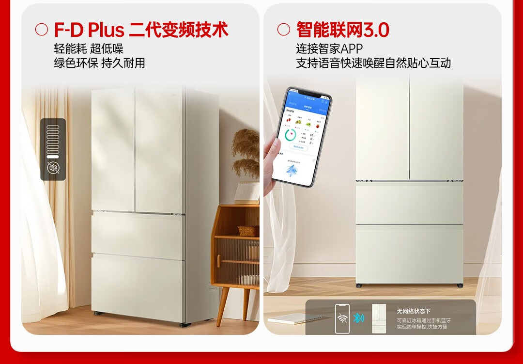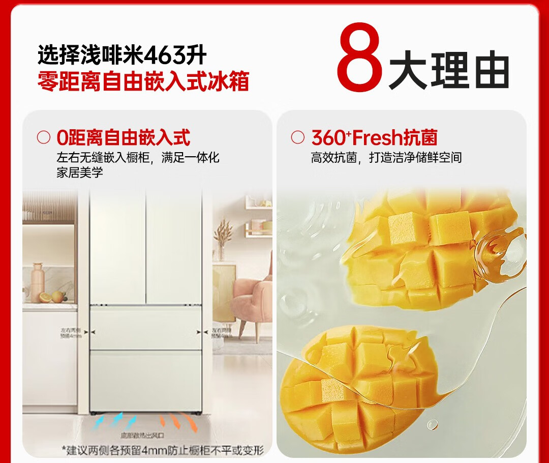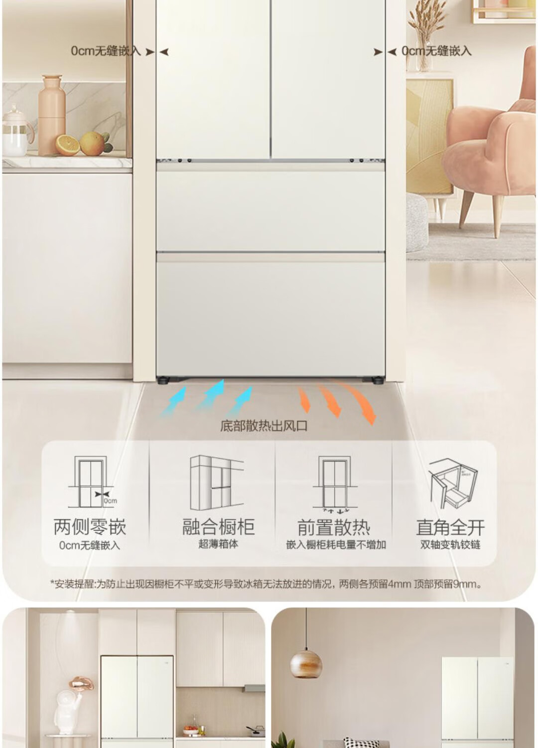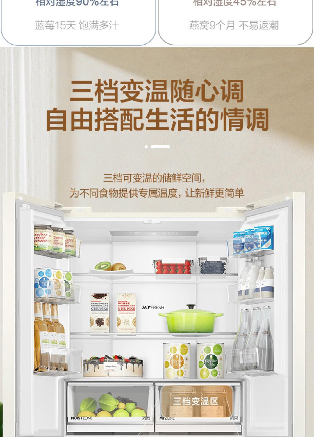 统帅【新品】海尔冰箱出品463升嵌入式家用白色薄法式多开门四门风冷无霜一级电冰箱 奶油风+二代变频技术+干湿分储+三档变温BCD-463WGLTD45Y9U1