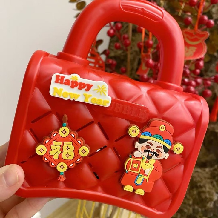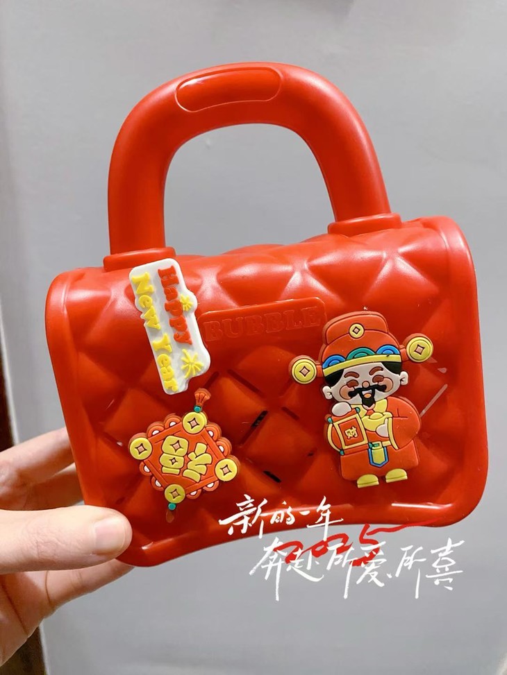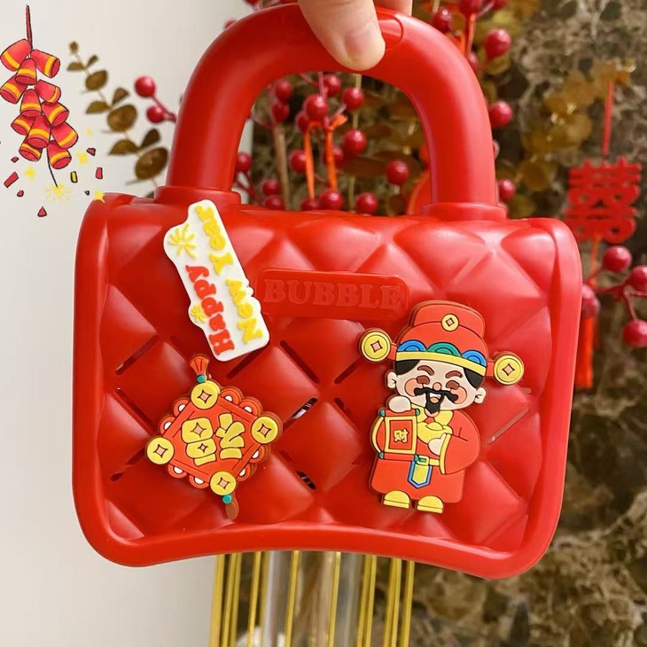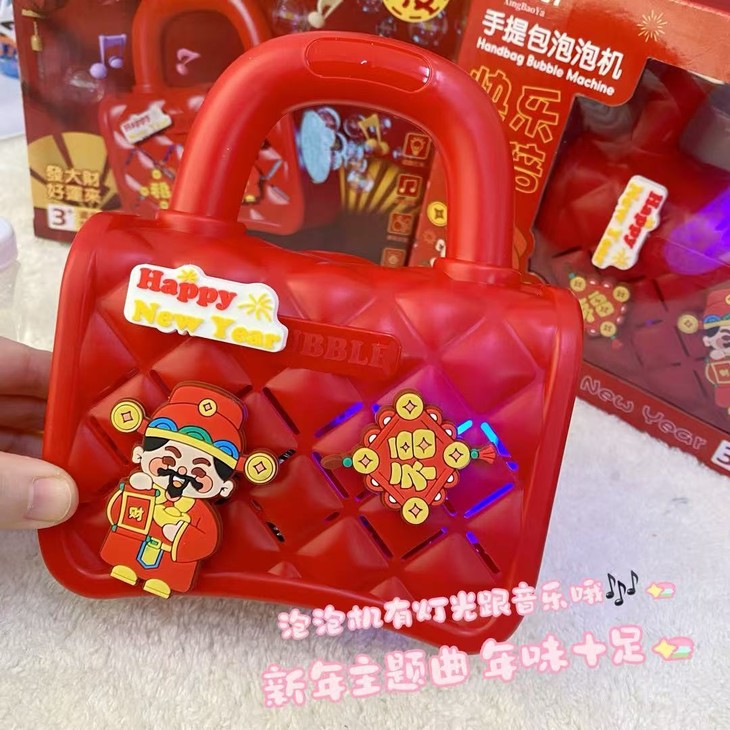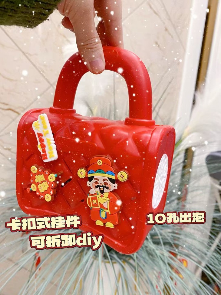 🎀过年啦过年啦,红红火火过新年!! 设计师脑洞大开,🎁手提包式设计,造型新颖独特且方便携带 🪄这个新年快乐加倍,不开心是因为买的不够,一个不够就再买一个 新年一起手提泡泡🎊玩出七彩人生~~ 精致的外观还可作为时尚的新年配饰,为出行增添一抹亮丽色彩 🧧路上手提摆件,广场开启泡泡派对,这种感觉太美妙了