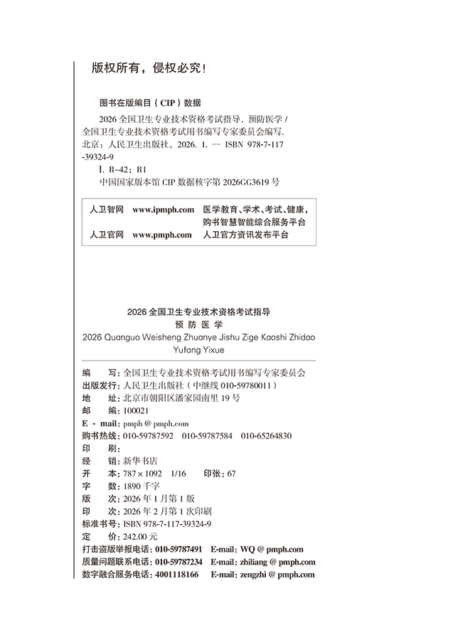 书名:2026全国卫生专业技术资格考试指导——预防医学