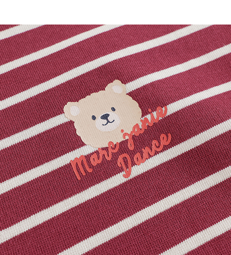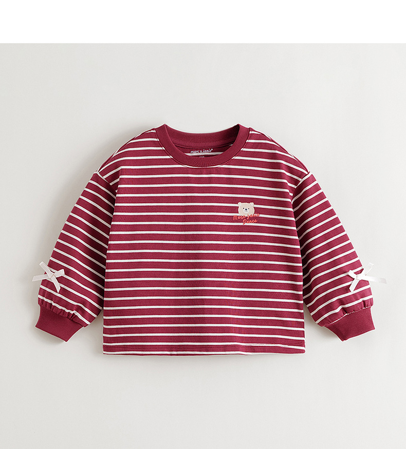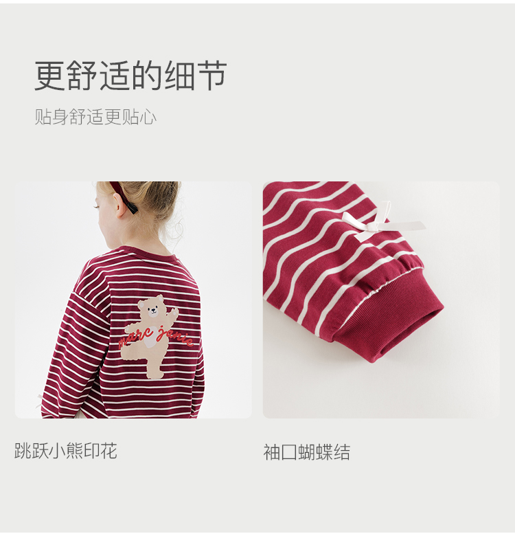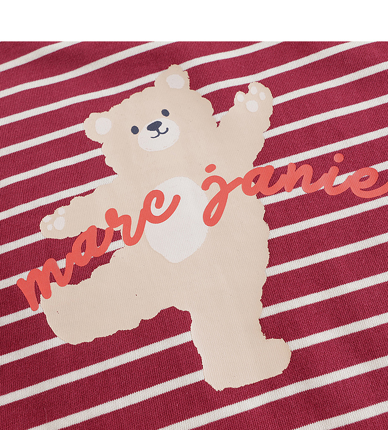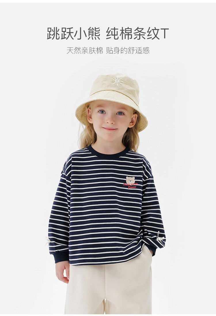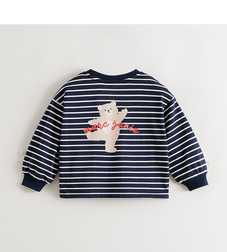 马克珍妮女童跳跃小熊条纹T恤 宝宝纯棉上衣2025年秋装新款551191