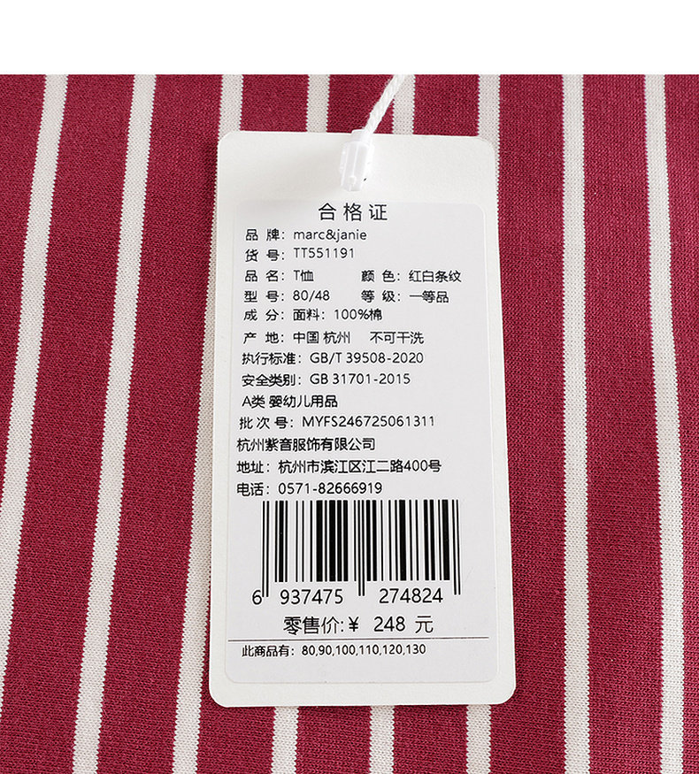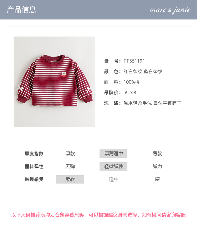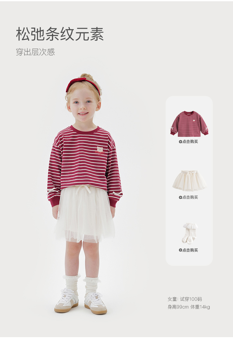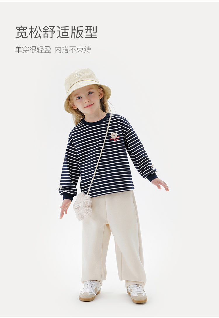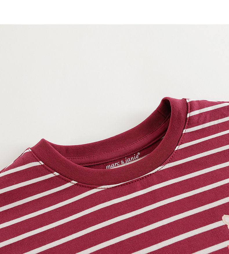 马克珍妮女童跳跃小熊条纹T恤 宝宝纯棉上衣2025年秋装新款551191