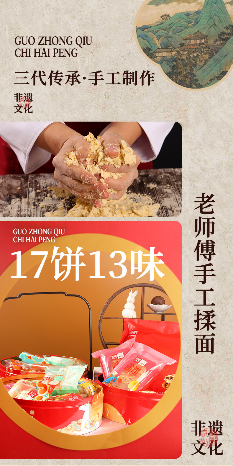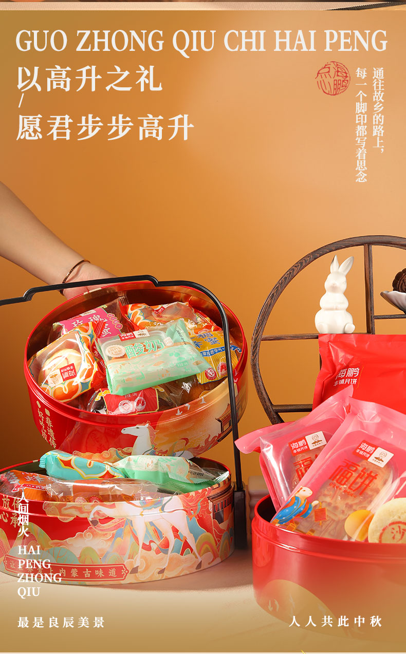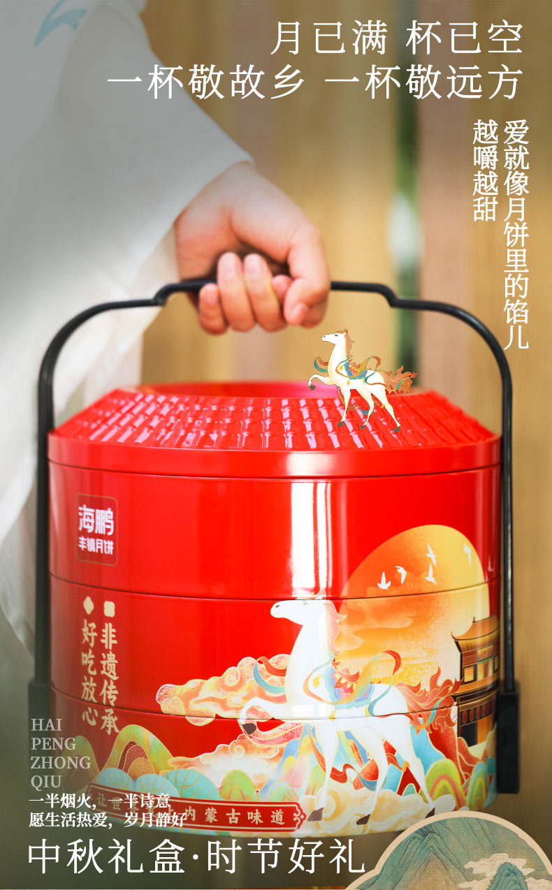 海鹏丰镇月饼中秋高档代代福-三层提篮(17枚含月贡)
