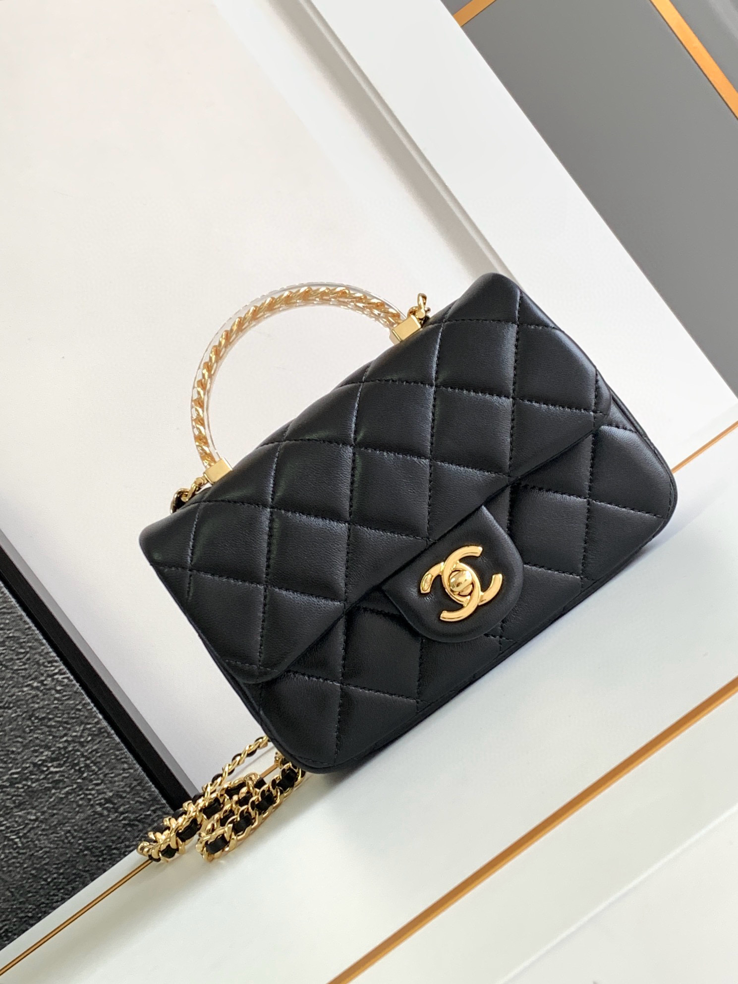 秋冬特惠💰1100 原单香奈儿小号19cmCHANEL 24s 新款手柄CF mini黑色4847!