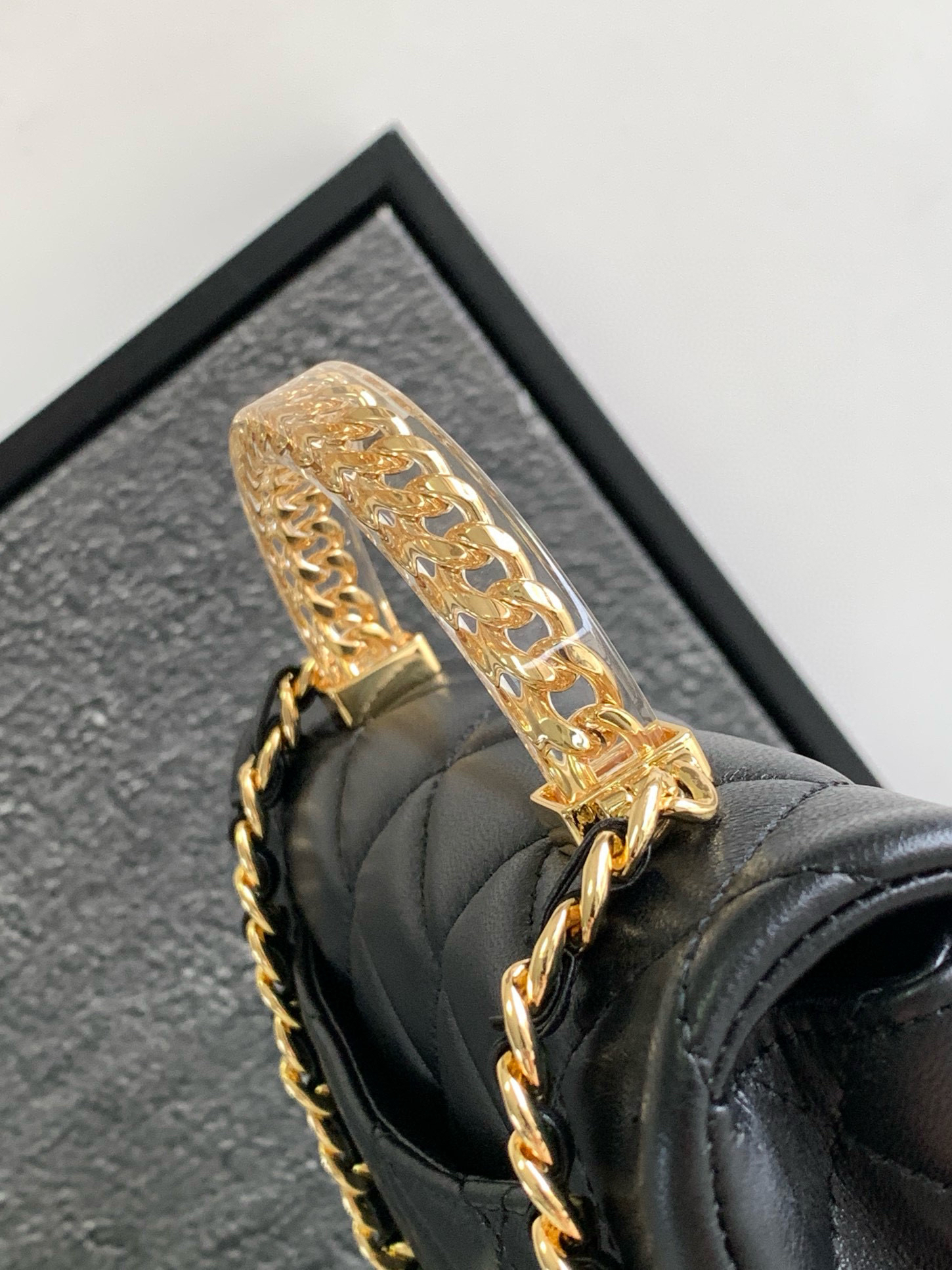 秋冬特惠💰1100 原单香奈儿小号19cmCHANEL 24s 新款手柄CF mini黑色4847!梦中情包再添一员~经典粗编织链条+透明冰块树脂手柄,一拎就是整个春夏轻盈清透!妥妥的本季颜值天花板,瞬间❤️寸:19*12*6cm