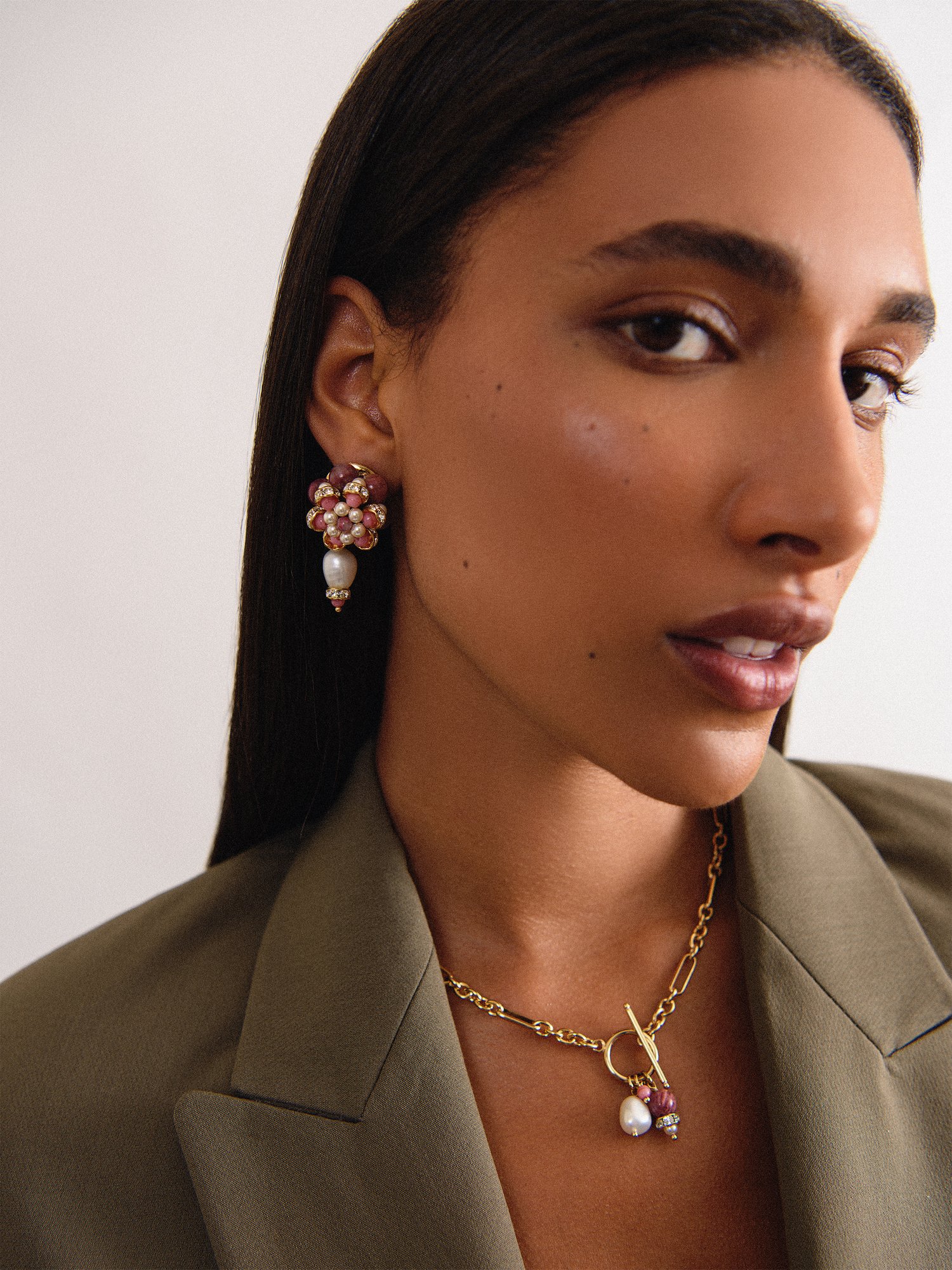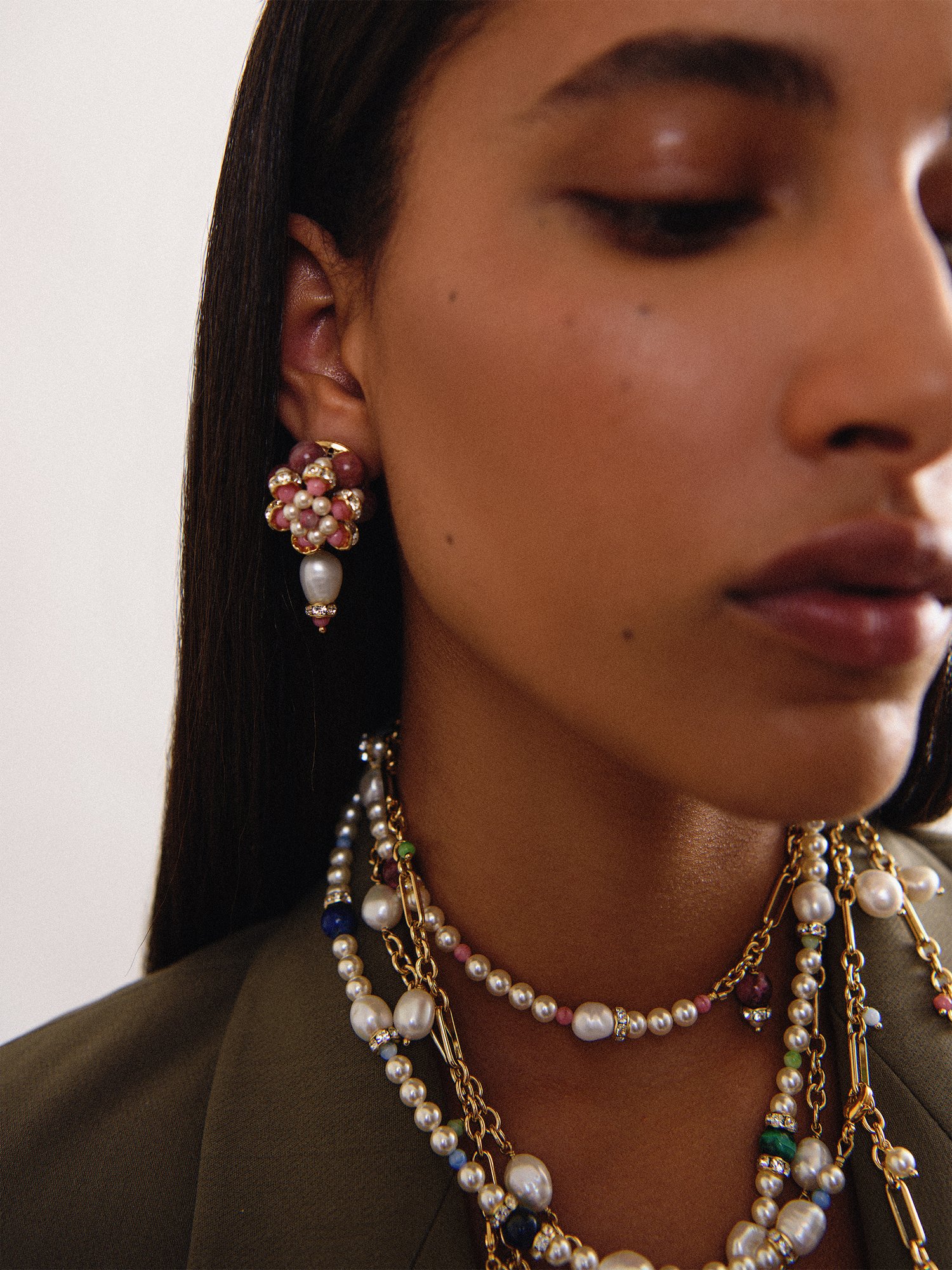 Chabaux GARDEN OF MORVI系列花型耳钉-粉色/黑白