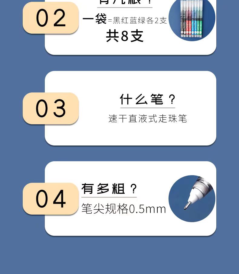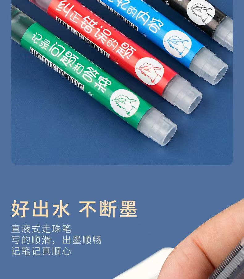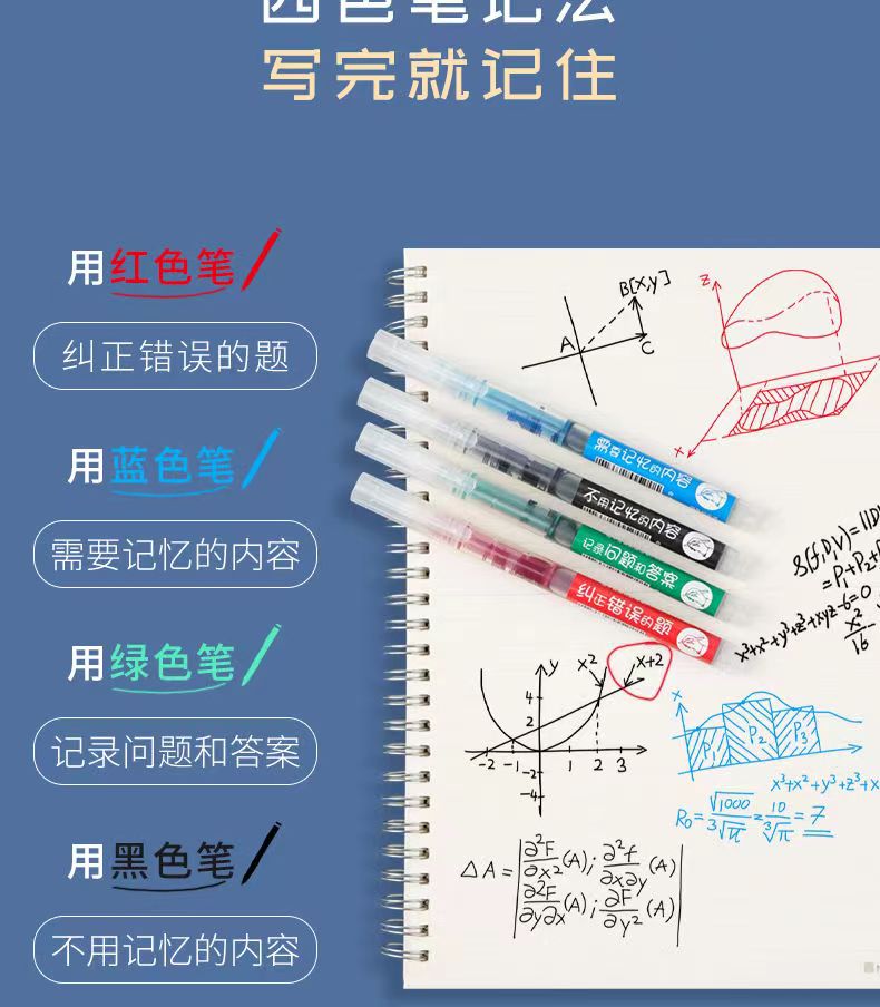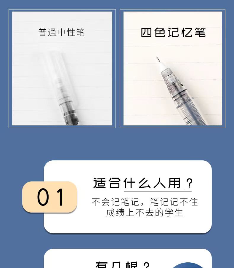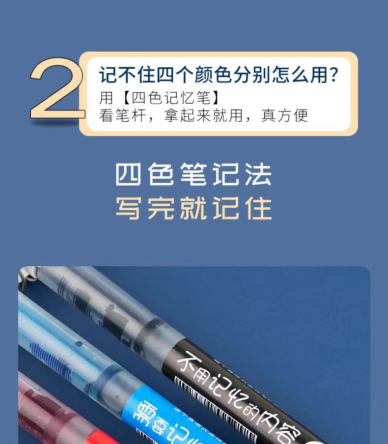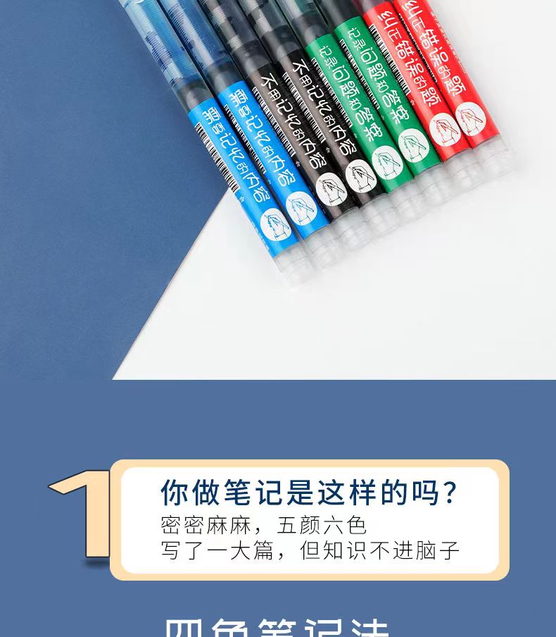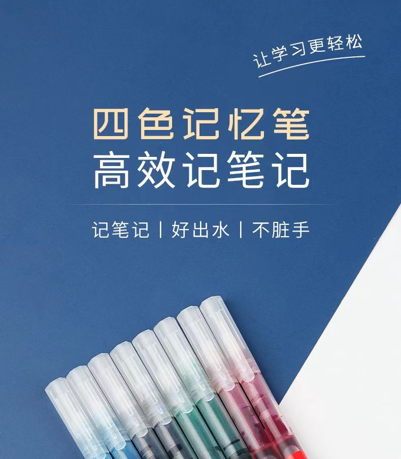 开学季福利!【8支装笔记记忆笔】四色记忆笔学生笔记神器大容量直液式速干走珠笔
