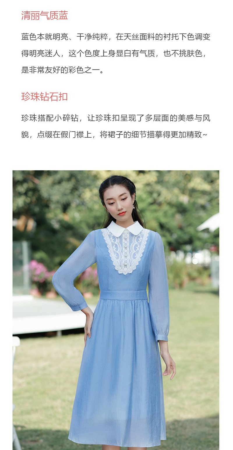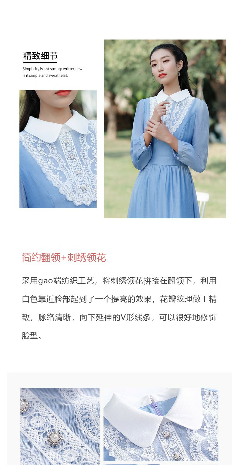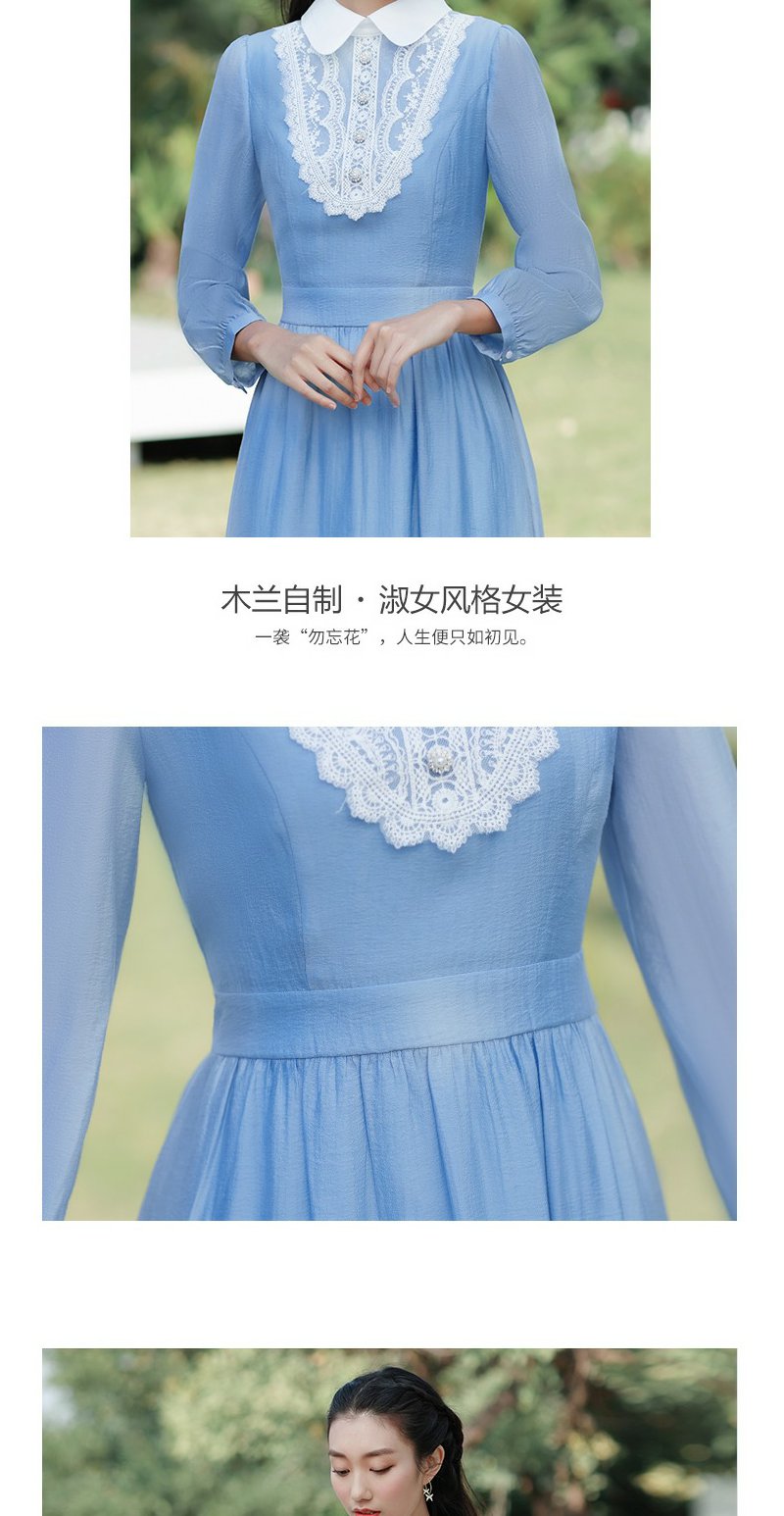 勿忘花法式连衣裙女2024年春季新款优雅气质收腰显瘦复古长袖裙子