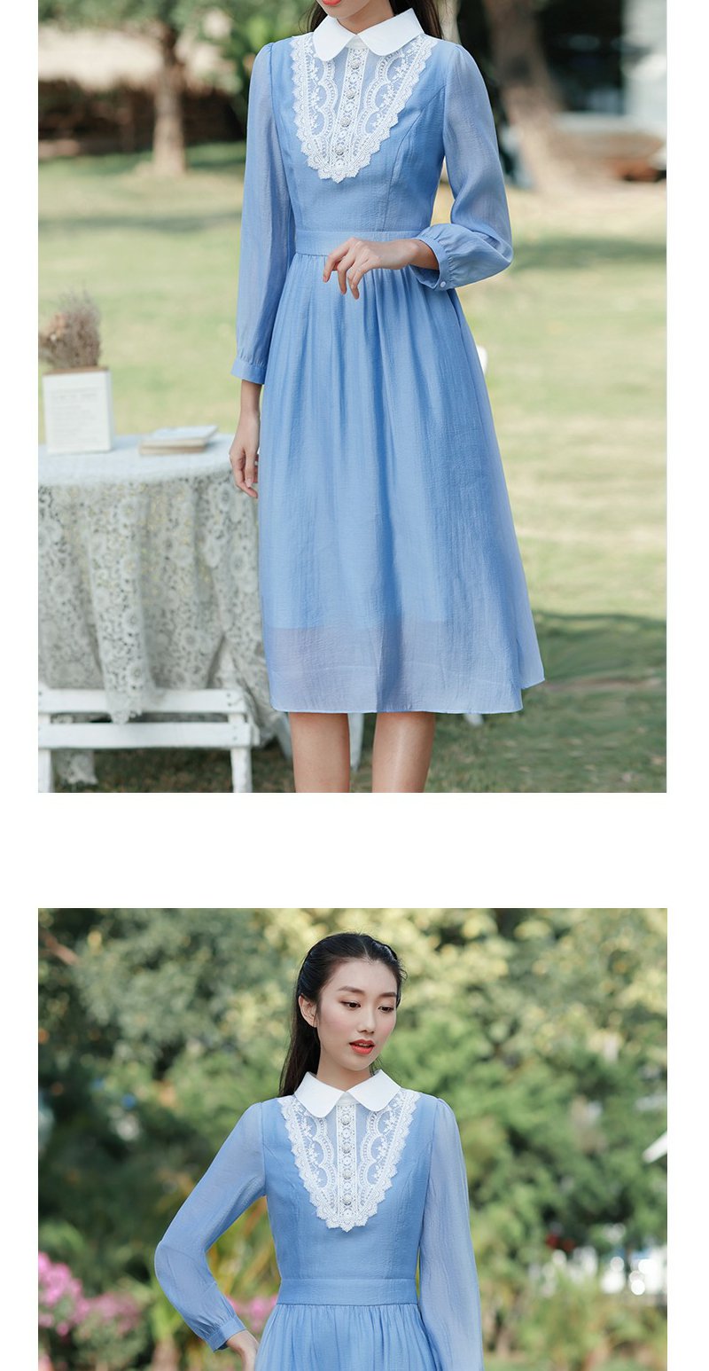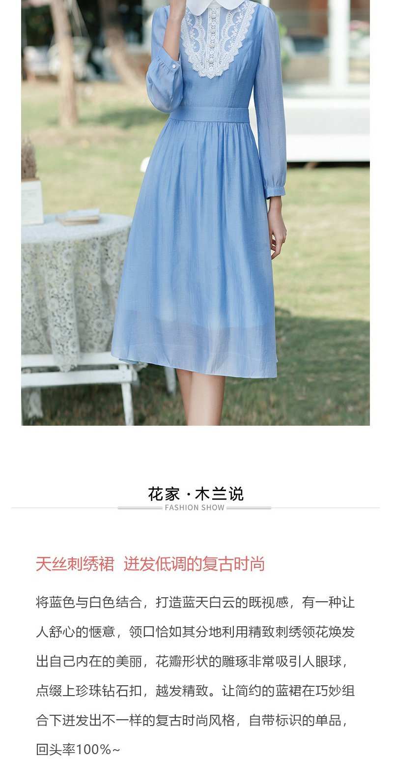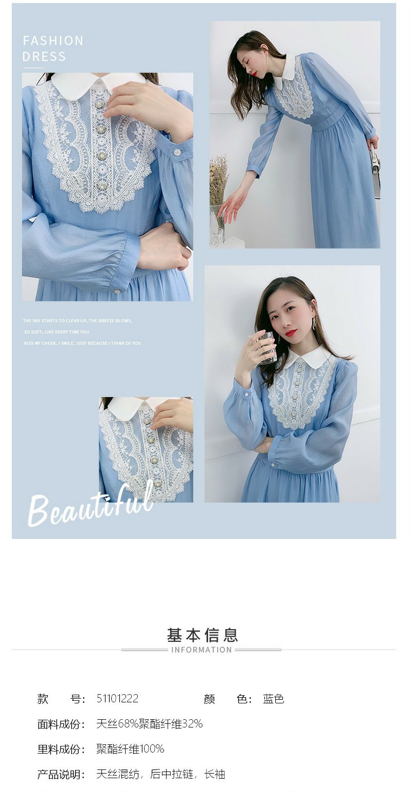 勿忘花法式连衣裙女2024年春季新款优雅气质收腰显瘦复古长袖裙子
