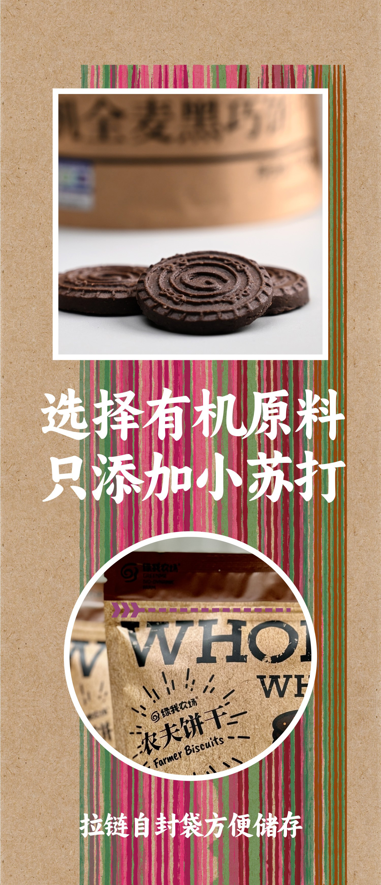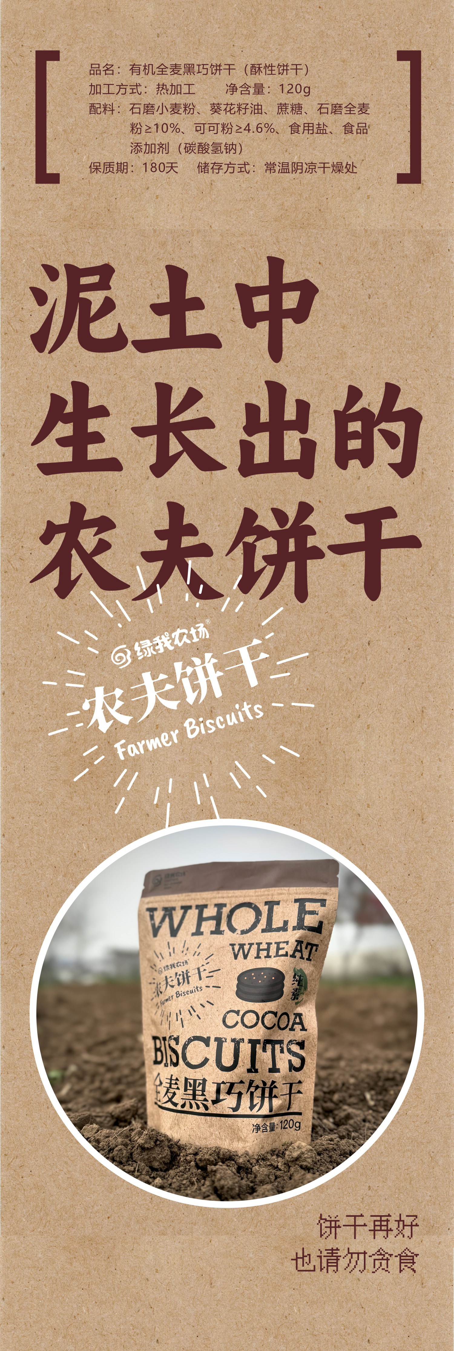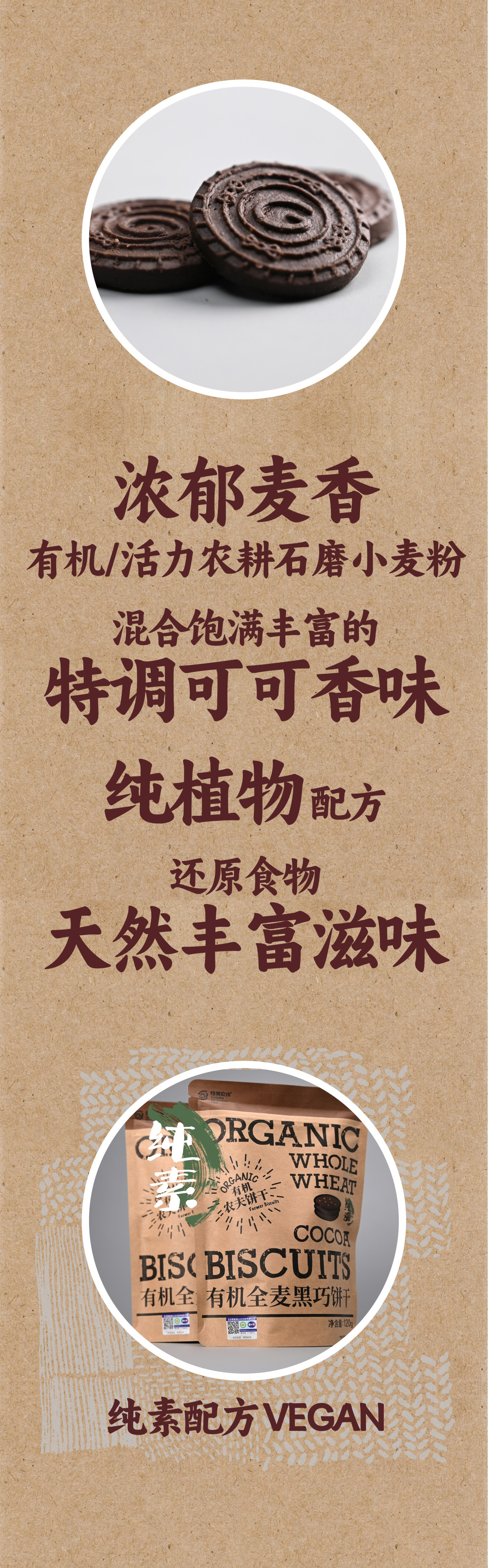 有机纯素全麦黑巧饼干120g|绿我农场