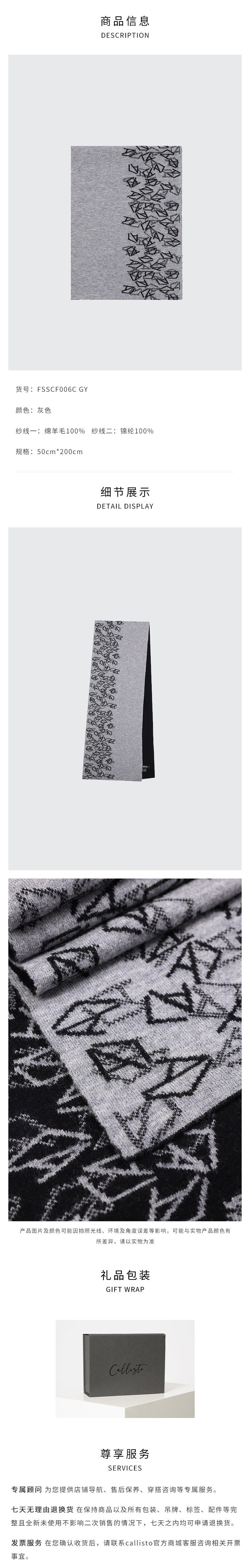 callisto灰色全绵羊毛围巾 FSSCF006C