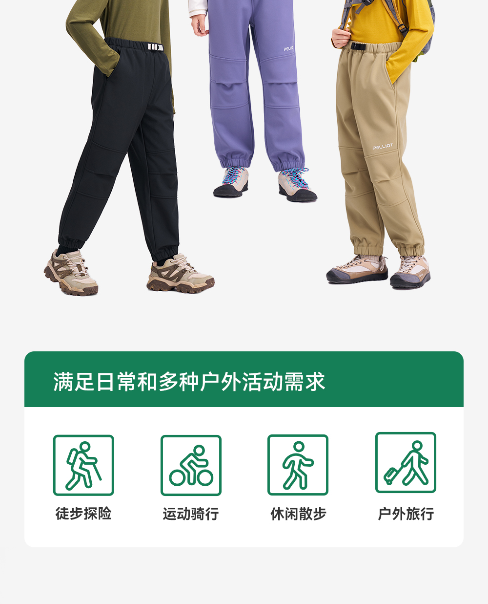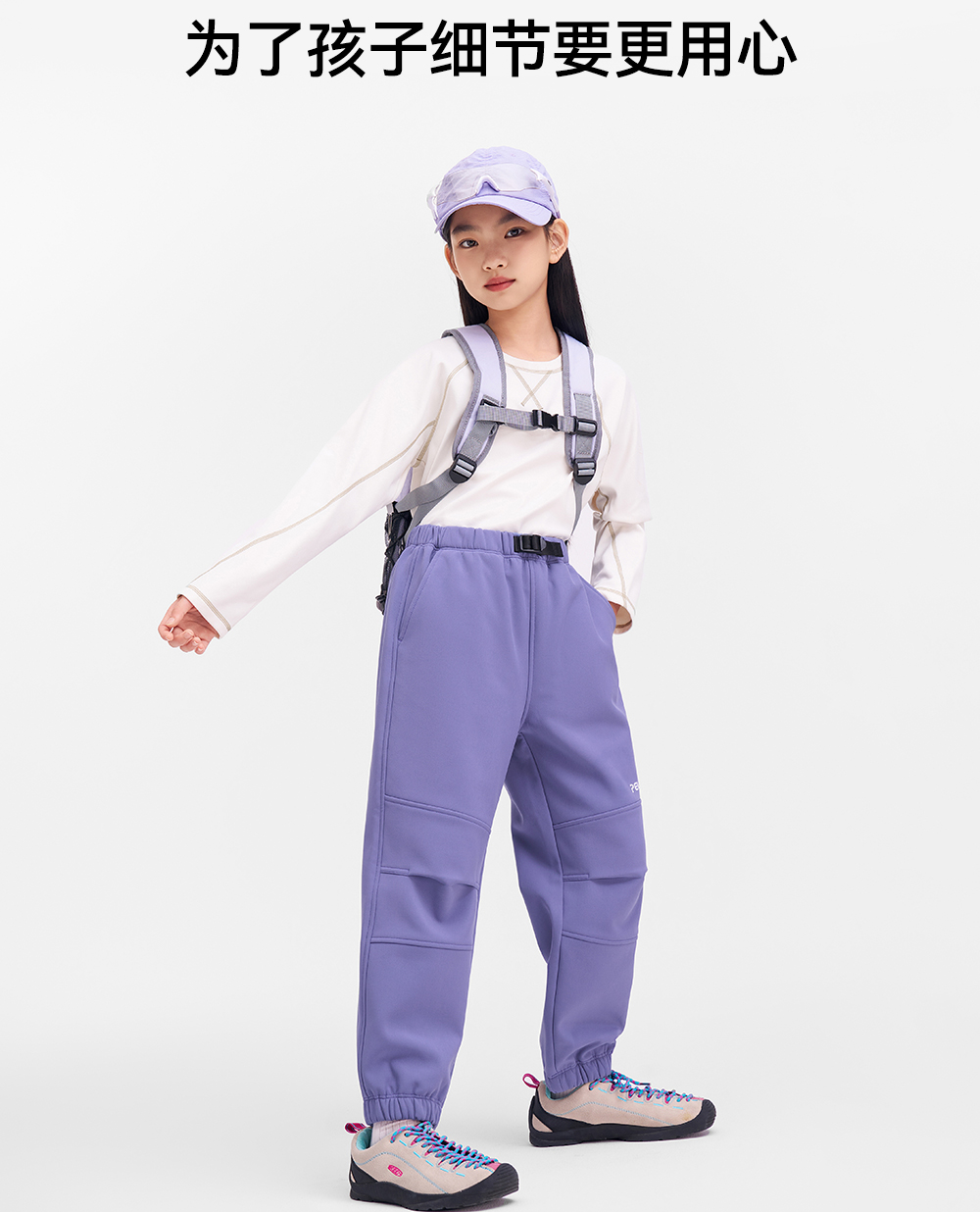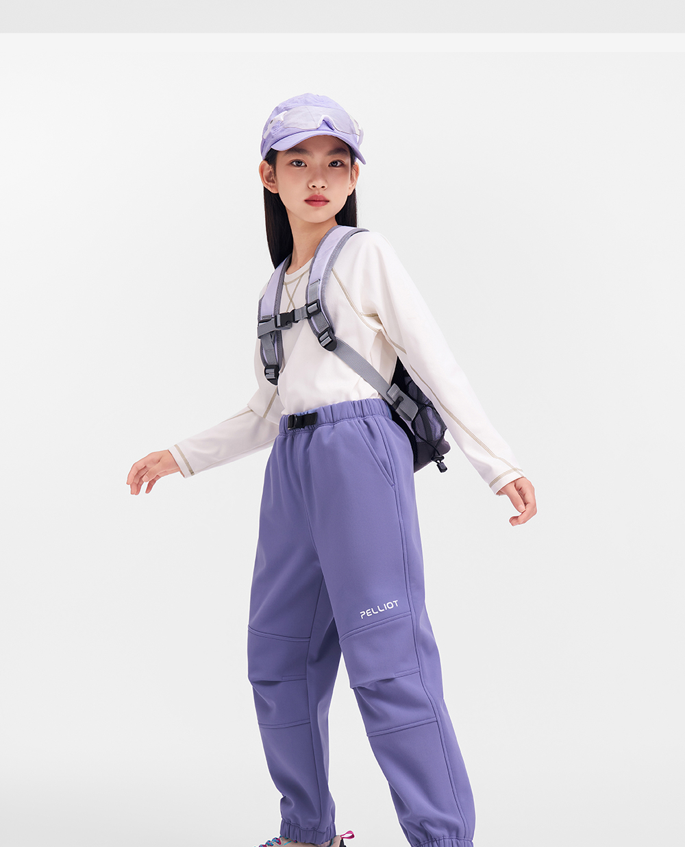 伯希和户外儿童软壳裤秋冬新款男童女童防风轻盈柔软摇粒绒保暖裤