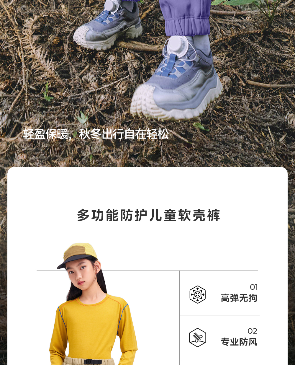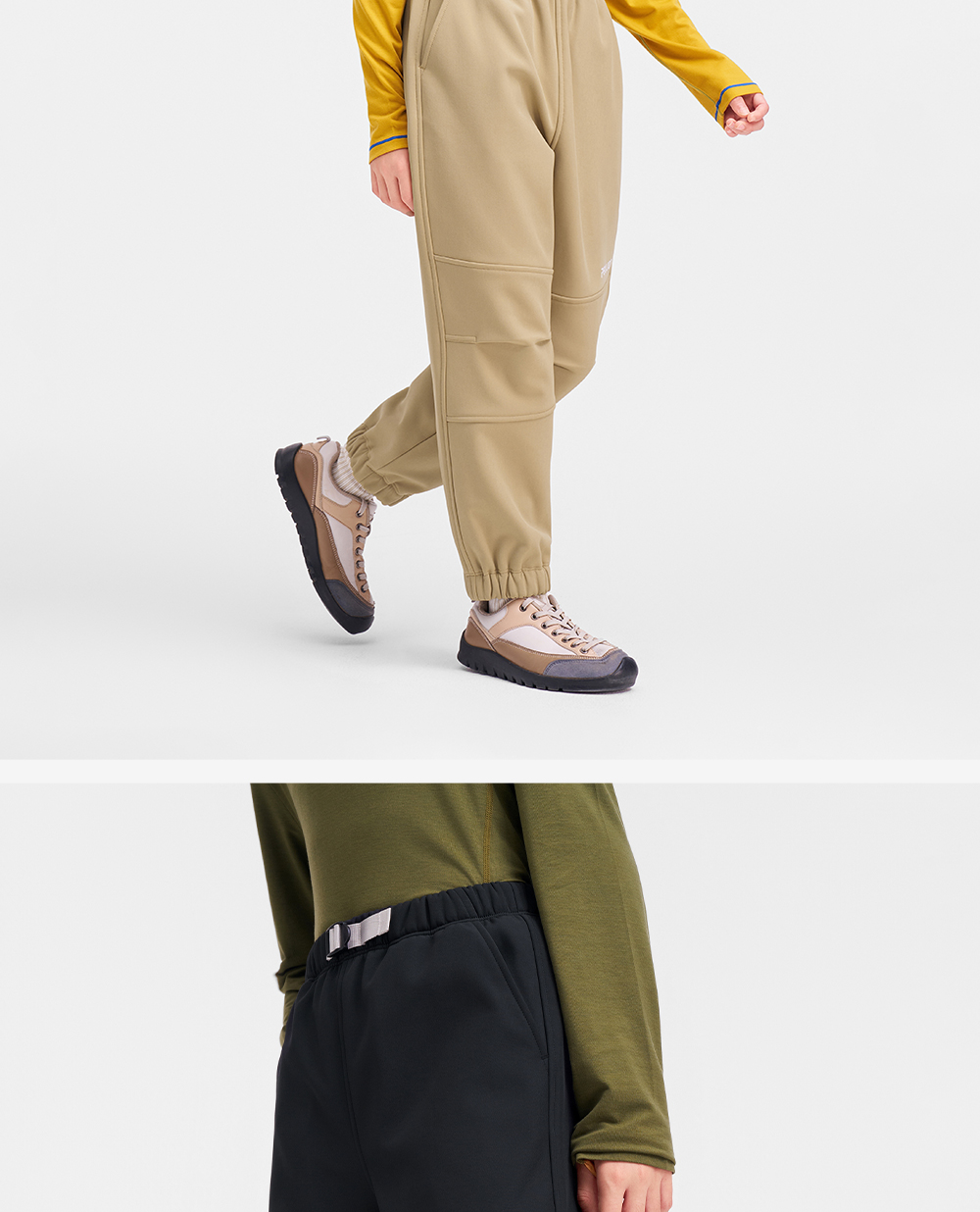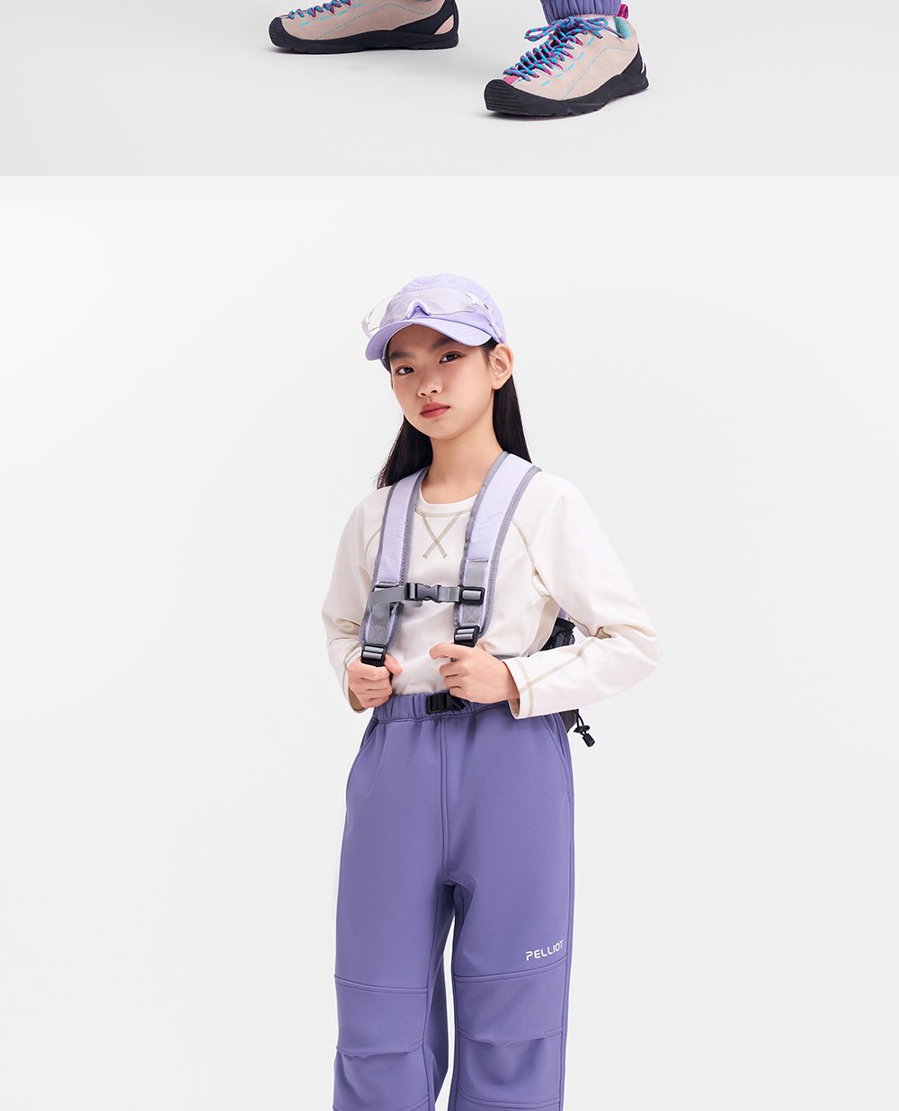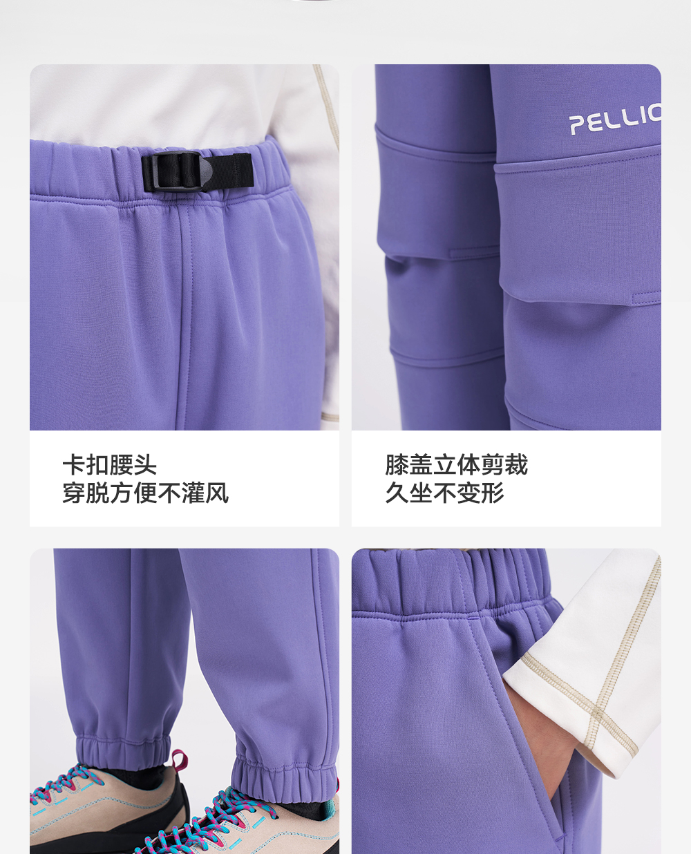 伯希和户外儿童软壳裤秋冬新款男童女童防风轻盈柔软摇粒绒保暖裤