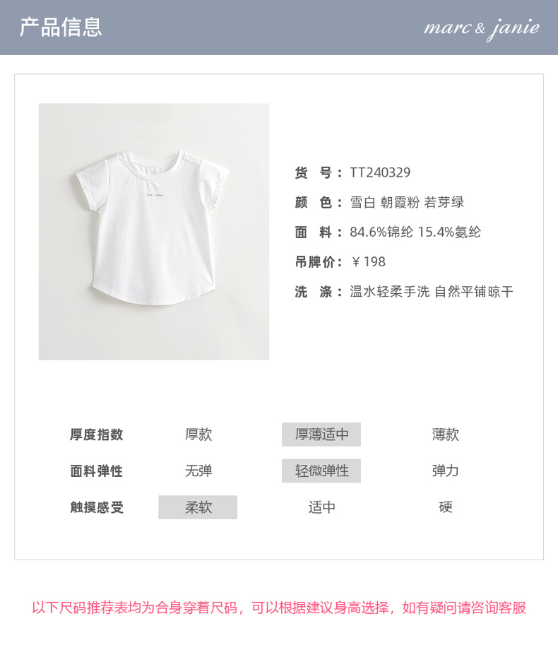 [凉感防晒]马克珍妮女童休闲运动短袖T恤儿童上衣夏装新款240329