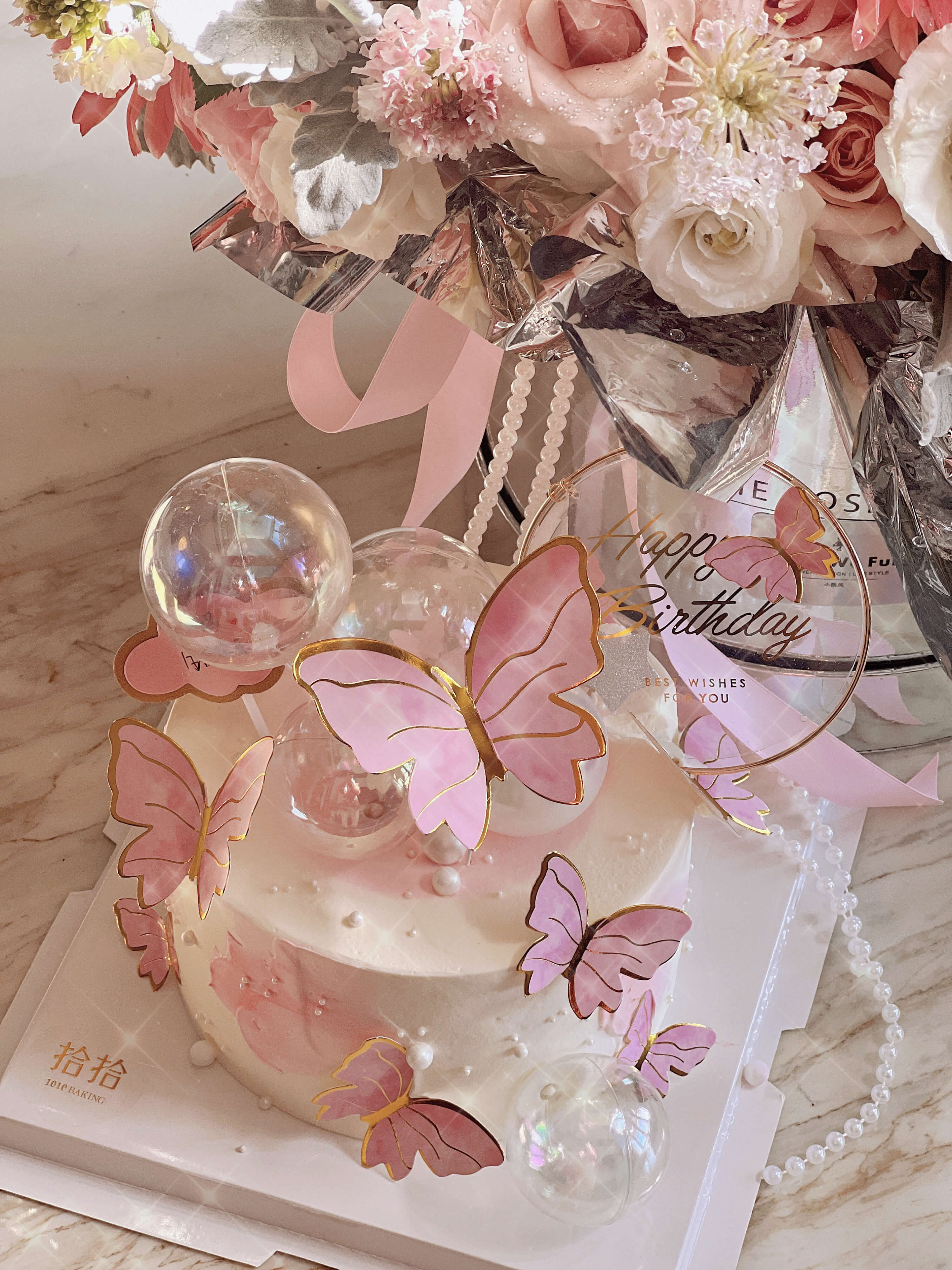 「ins小仙儿·粉蝴蝶蛋糕」100%动物奶油(附图6寸·提前6小时预订)
