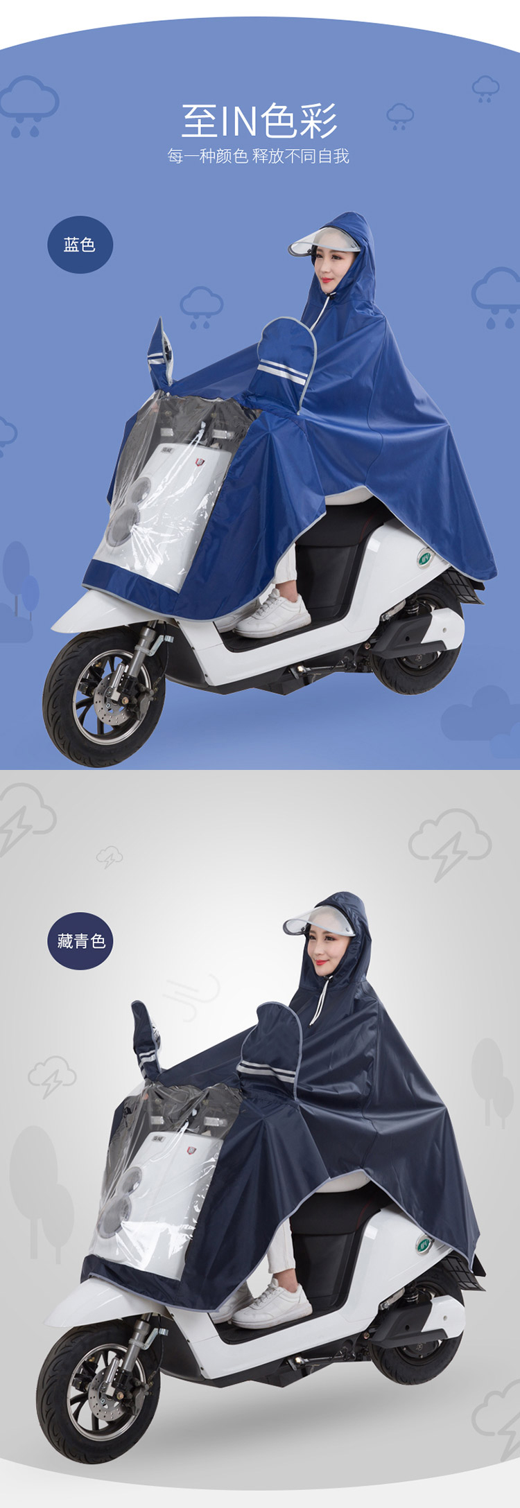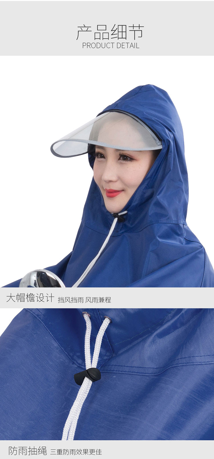 雨航 YUHANG 户外骑行成人电动电瓶摩托车单人雨衣男女式单人雨披 大帽檐 3XL蓝色