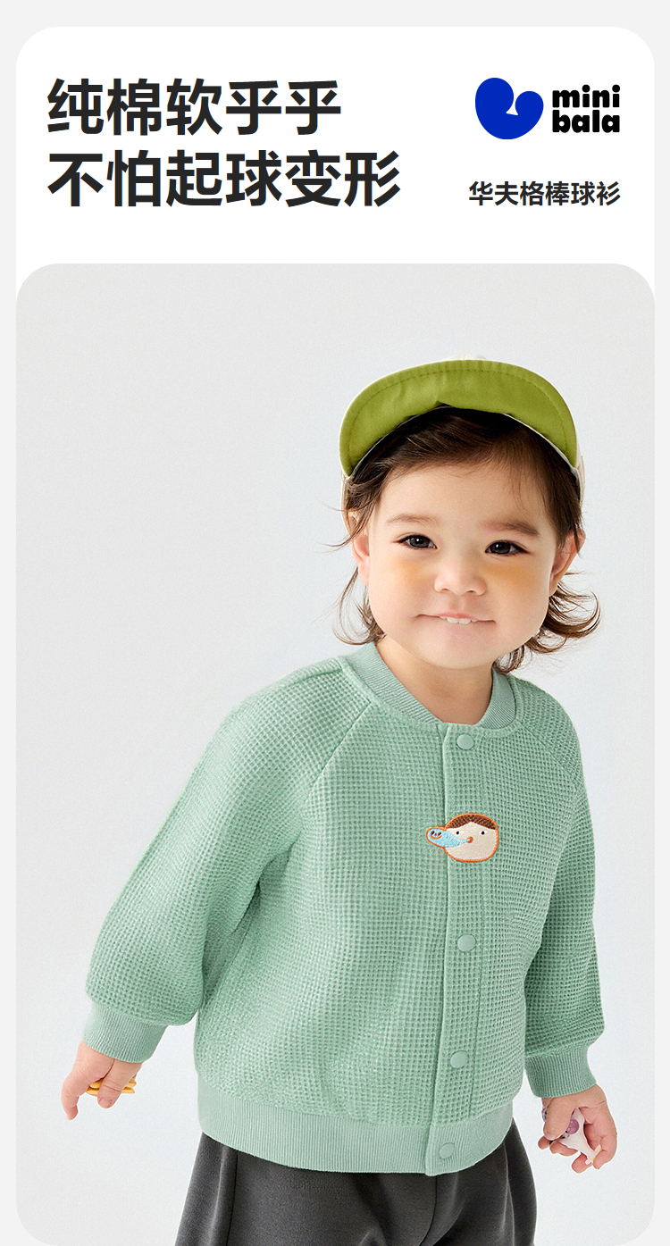 迷你巴拉巴拉男女宝宝全棉外套华夫格纯棉软糯开衫2026春